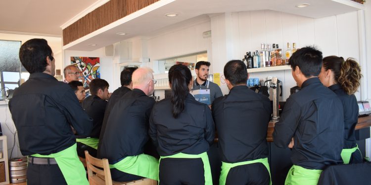 O vigués acudiu ao local do Pénjamo SunBar, na Praia de Patos, para dar unha clase maxistral de máis de dúas horas ás persoas alí presentes, que puideron aprender moito do mellor barista do país, que concorreu ao certame como subcampión Barista de Galicia e que se impuxo a outros 15 aspirantes.