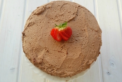 Montamos nuestra ganache con ayuda de unas varillas, como si se tratase de nata montada. Abrimos el bizcocho a la mitad con cuidado. Rellenamos con parte de la ganache, y luego cubrimos la tarta por encima con la misma crema.