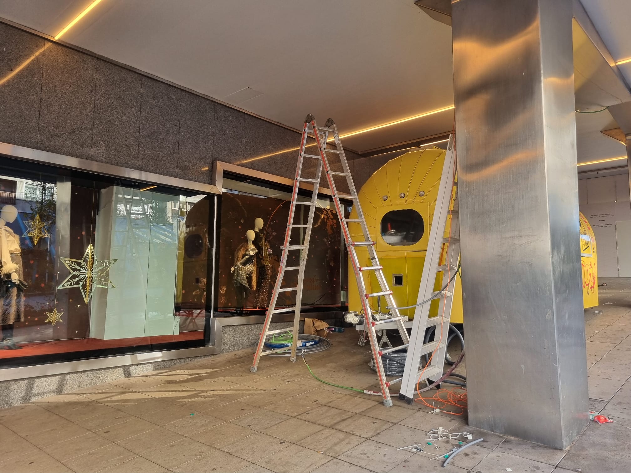 De hecho, ya lo estuvo desde primera hora de la mañana, cuando sus trabajadores se ‘montaron’ literalmente en la acera y bajo la marquesina de El Corte Inglés de la ciudad, repitiendo así la localización de hace más de un año.