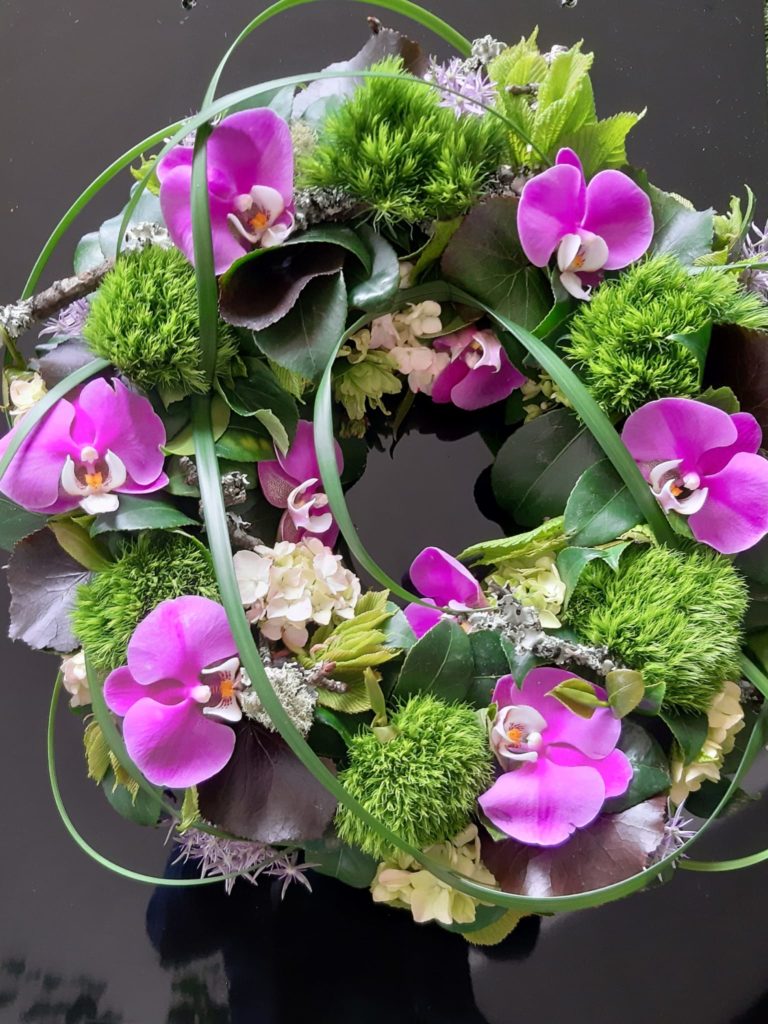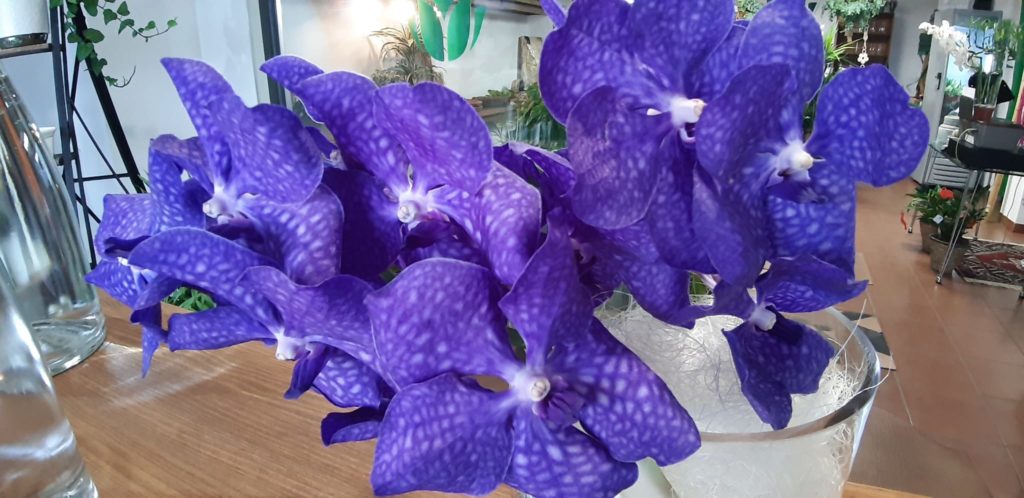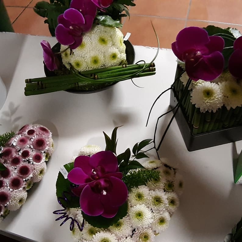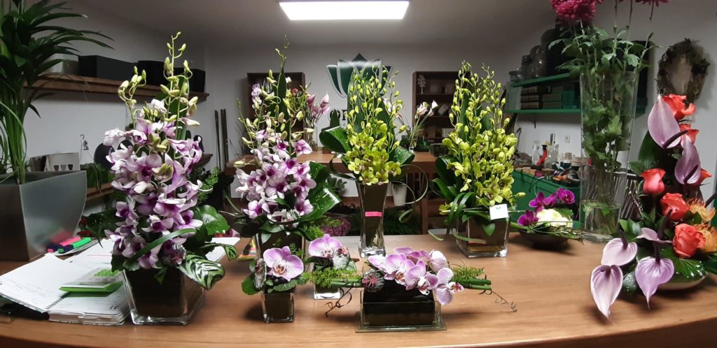 “Las flores regresarán a los cementerios, eternidad y sabiduría es el significado del crisantemo, es la época de la temporada y recogida, así que por calidad y precio es la protagonista que llena nuestros cementerios. Devuelven el color y la memoria de los que ya no están con nosotros, son el homenaje a nuestros seres queridos y, si alguien no puede ir, se las llevamos”, señala Isabel. Pero hay excepciones para toda regla y los clientes se inclinan cada vez más hacia las flores exóticas. “Bellas heliconias, maravillosas proteas, diversidad de orquídeas: vandas, phalaenopsis, y por supuesto las elegantes rosas, lisianthus y una gran variedad de verde que son la cabecera de nuestras creaciones, dando intensidad a la belleza de las flores”, añade.