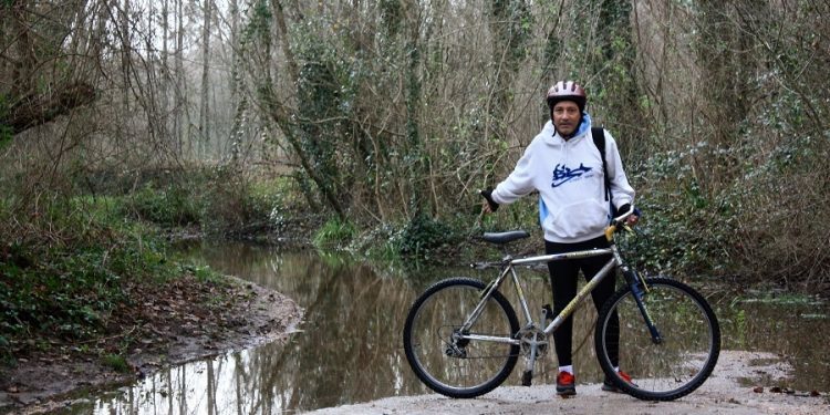 Estas dos fotos son para que podáis ver que por aquí ya no tuve más remedio que mojarme. La bici se me clavó en el barro y tuve que poner el pie en tierra y empujar hasta que llegué al estrecho puentecito de la foto. Al bajar del puente me monté otra vez y esta vez sí que pude avanzar a duras penas por el duro suelo en un camino completamente inundado. Es un paso por debajo de las vías del tren. La altura del agua era considerable, me llegaba hasta cubrir la catalina grande pero lo creáis o no esto es lo bonito de estas rutas de invierno.