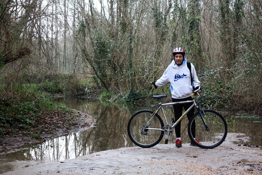 Estas dos fotos son para que podáis ver que por aquí ya no tuve más remedio que mojarme. La bici se me clavó en el barro y tuve que poner el pie en tierra y empujar hasta que llegué al estrecho puentecito de la foto. Al bajar del puente me monté otra vez y esta vez sí que pude avanzar a duras penas por el duro suelo en un camino completamente inundado. Es un paso por debajo de las vías del tren. La altura del agua era considerable, me llegaba hasta cubrir la catalina grande pero lo creáis o no esto es lo bonito de estas rutas de invierno.