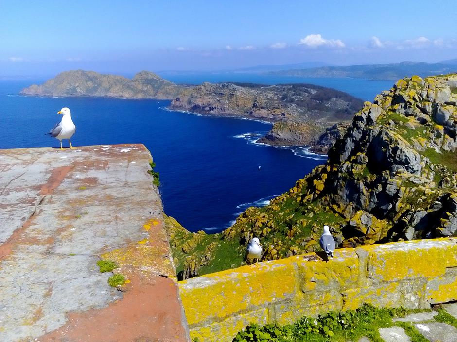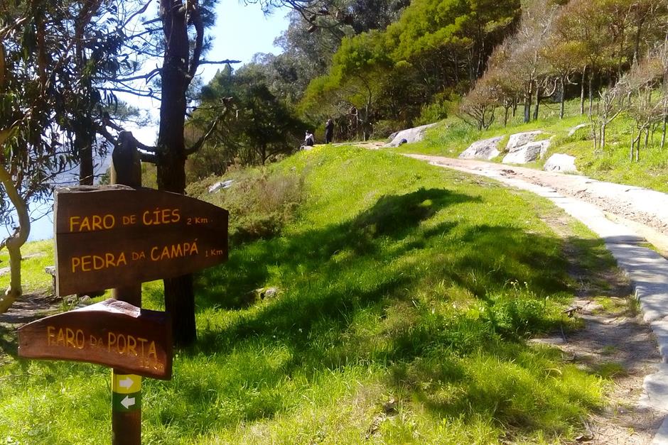 La primera parada en el camino es Pedra da Campá, un mirador rodeado de aves, un buen lugar para observarlas y también para tener una panóramica sobre el Lago do Nenos y Rodas. El lugar invita a sacar el bocadillo, pero deberá mostarse un poco de paciencia, tomar un poco de agua y regresar al camino principal para seguir hasta el final del sendero. Las cuestas incrementan el desnivel y tras un zig-zag se observa toda la subida. Los muros sirven para facilitar el camino en lo que supone una imagen de auténtica postal. Llegar hasta el Faro de Cíes debe ser obligatoria para decir que estuviste allí. En su cima, ahora sí, llega el momento del bocadillo entre gaviotas y panorámicas indescriptibles. Es necesario ir.