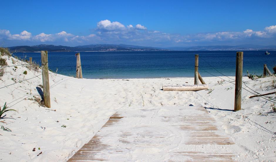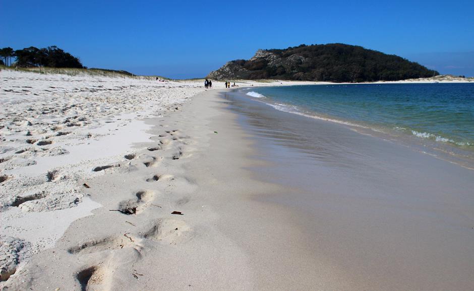 Para el descenso hay opciones, cambiar de ruta y regresar por la costa, parar en la coqueta Praia de Nosa Señora o irse a la Isla de Monteagudo para ascender al mirador del Príncipe y caminar un poco más entre árboles con aroma a mar. Todas son alternativas válidas, como puede ser tomar en sol en alguno de los bares con un refresco en la mano. También se puede optar por tumbarse y dejar que te golpen los rayos, pero el cuerpo pide dirigirse hacia uno de los extremos de la playa de Rodas, descalzarse y hacer por la orilla los 1.200 metros de arena fina y blanda. Probablemente, aquel redactor de The Guardian que la declaró como mejor playa del mundo optó por el paseo. Si ya escogió hacerlo de ida y vuelta, la hipótesis se convierte en afirmación.