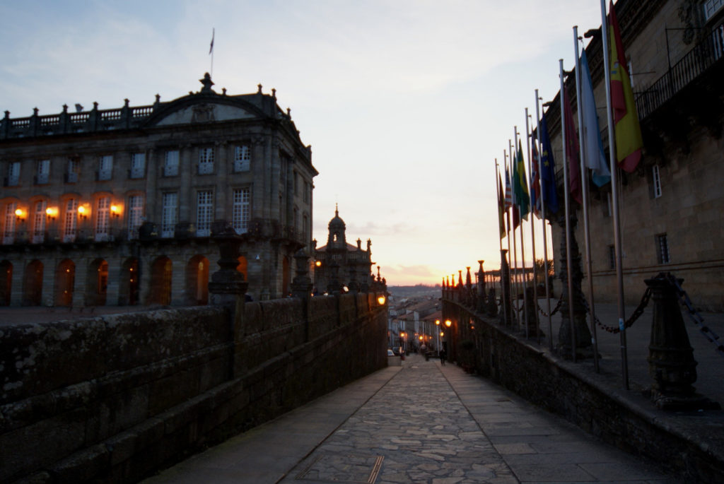Desde la Praza do Obradoiro me dispongo a empezar un camino que tiene, como cosa curiosa, el inicio en Santiago, que es el final del resto de rutas xacobeas. Son muchos los peregrinos (cada vez más) que tras llegar a Compostela continúan hacia Finisterre, punto final del Camino de las Estrellas y lugar de cultos paganos desde la más remota antigüedad.