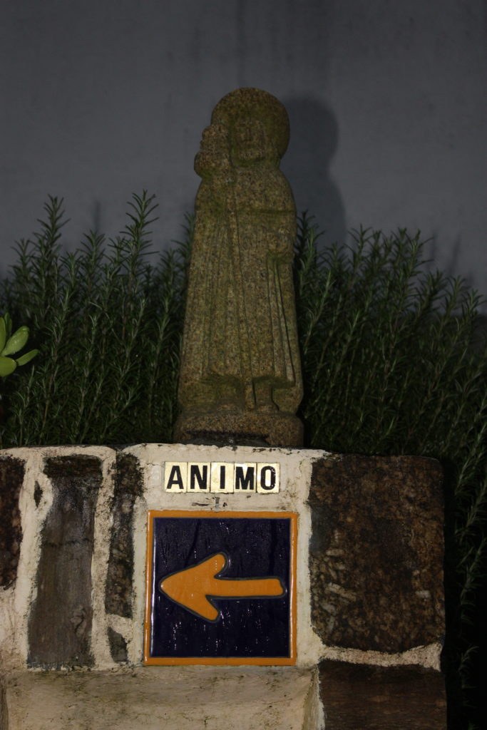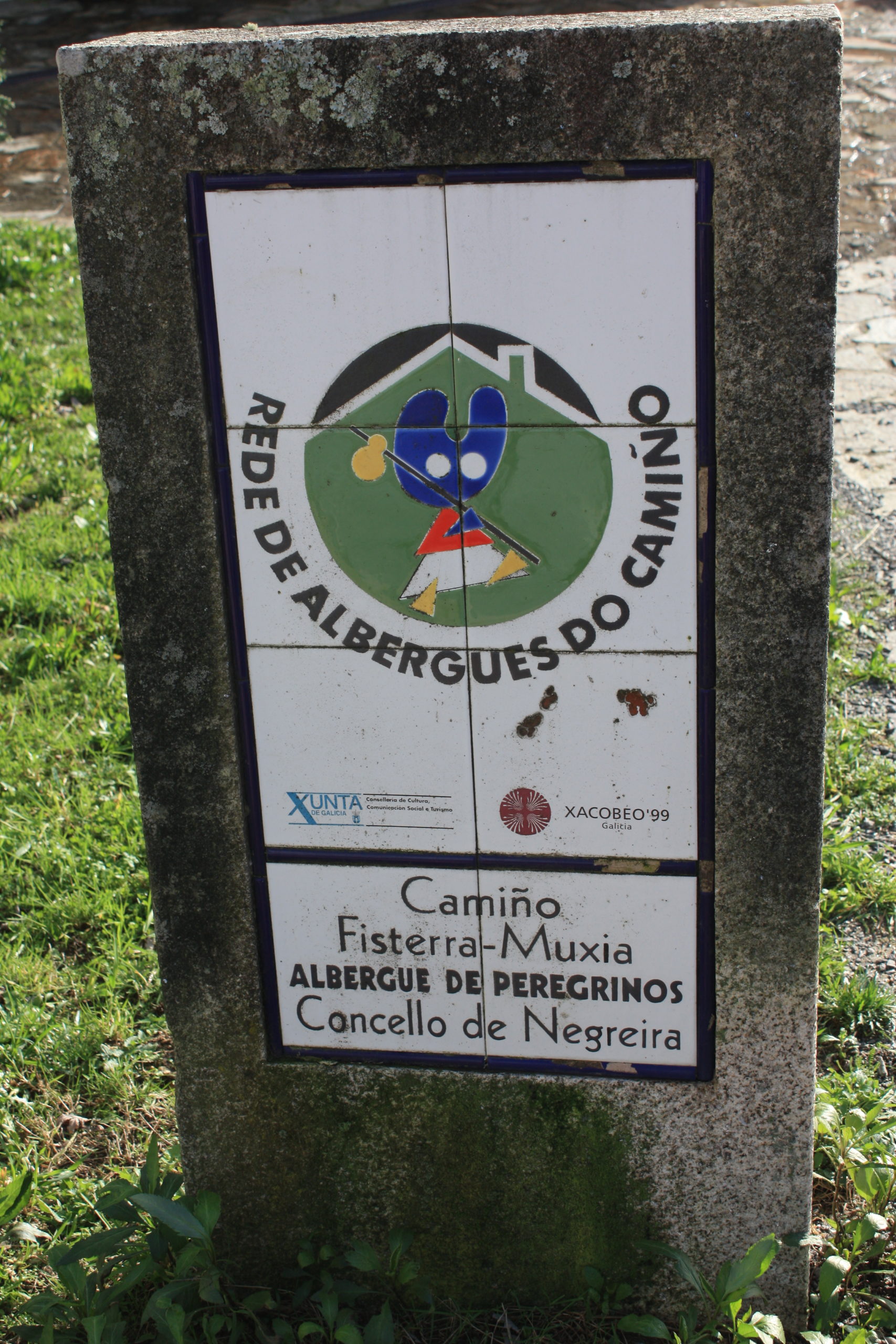 Ya en Negreira, paso por la estatua de un peregrino y, un poco más adelante, una campesina con un par de vacas. Aparecen varios albergues privados pero yo busco el público.