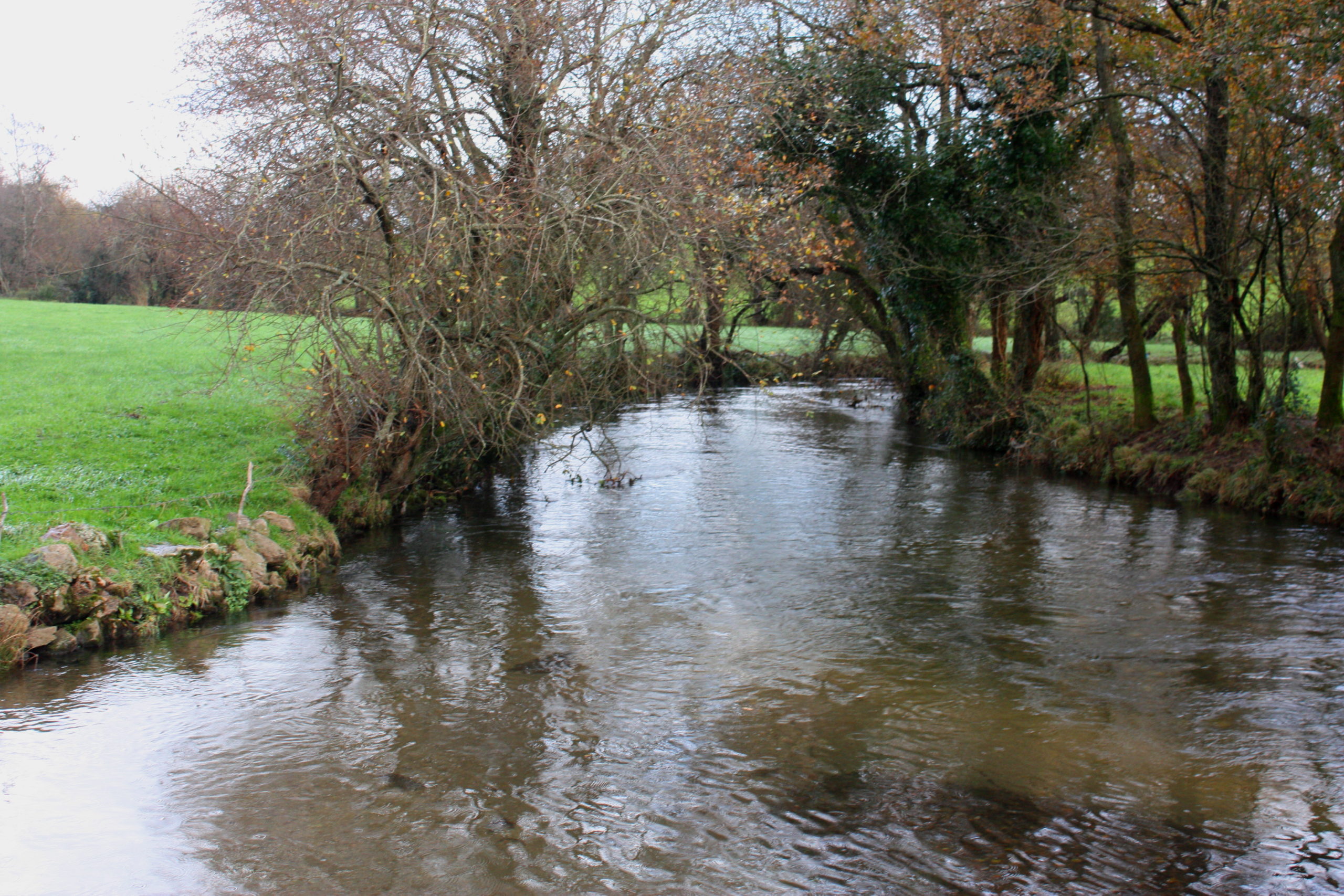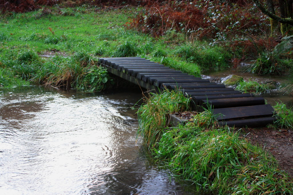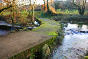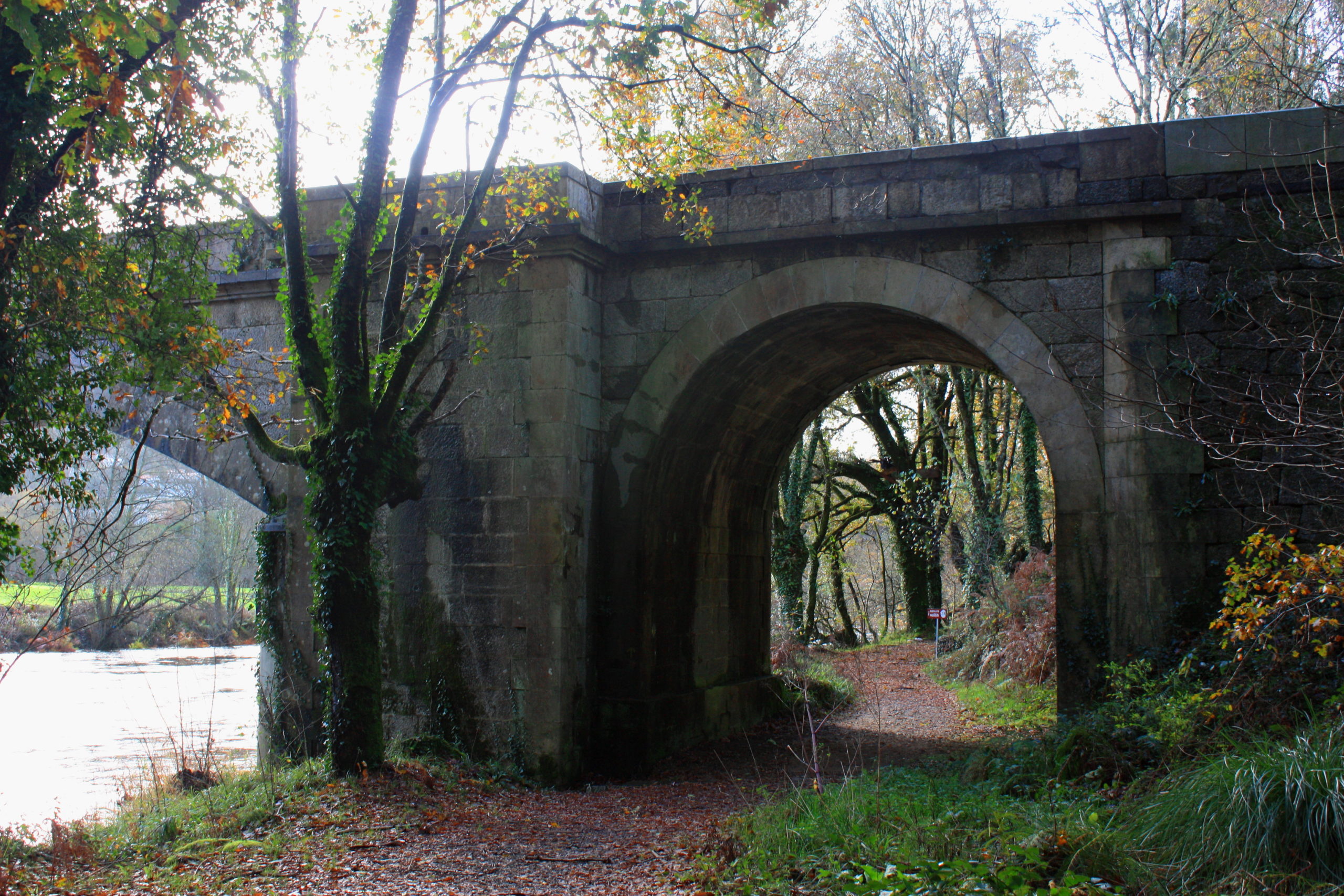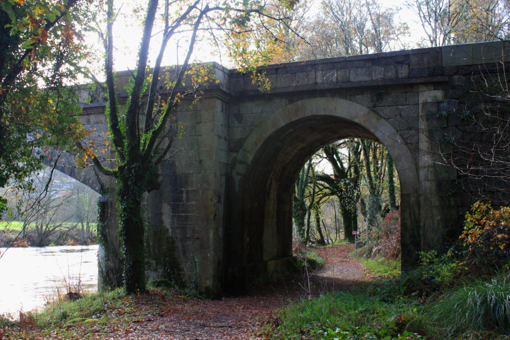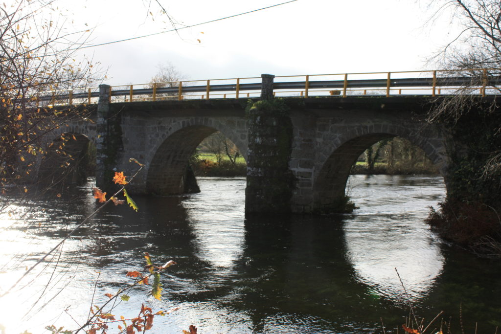 Llego hasta Augapesada. El itinerario me obliga a dejar la carretera para pasar junto al puente sobre el rego dos Pasos, un vado medieval rehabilitado de un solo ojo (km 11,6). Permite atravesar el arroyo, que desemboca en el Sar. Es importante por su antigüedad y ser una parte de la ruta xacobea.