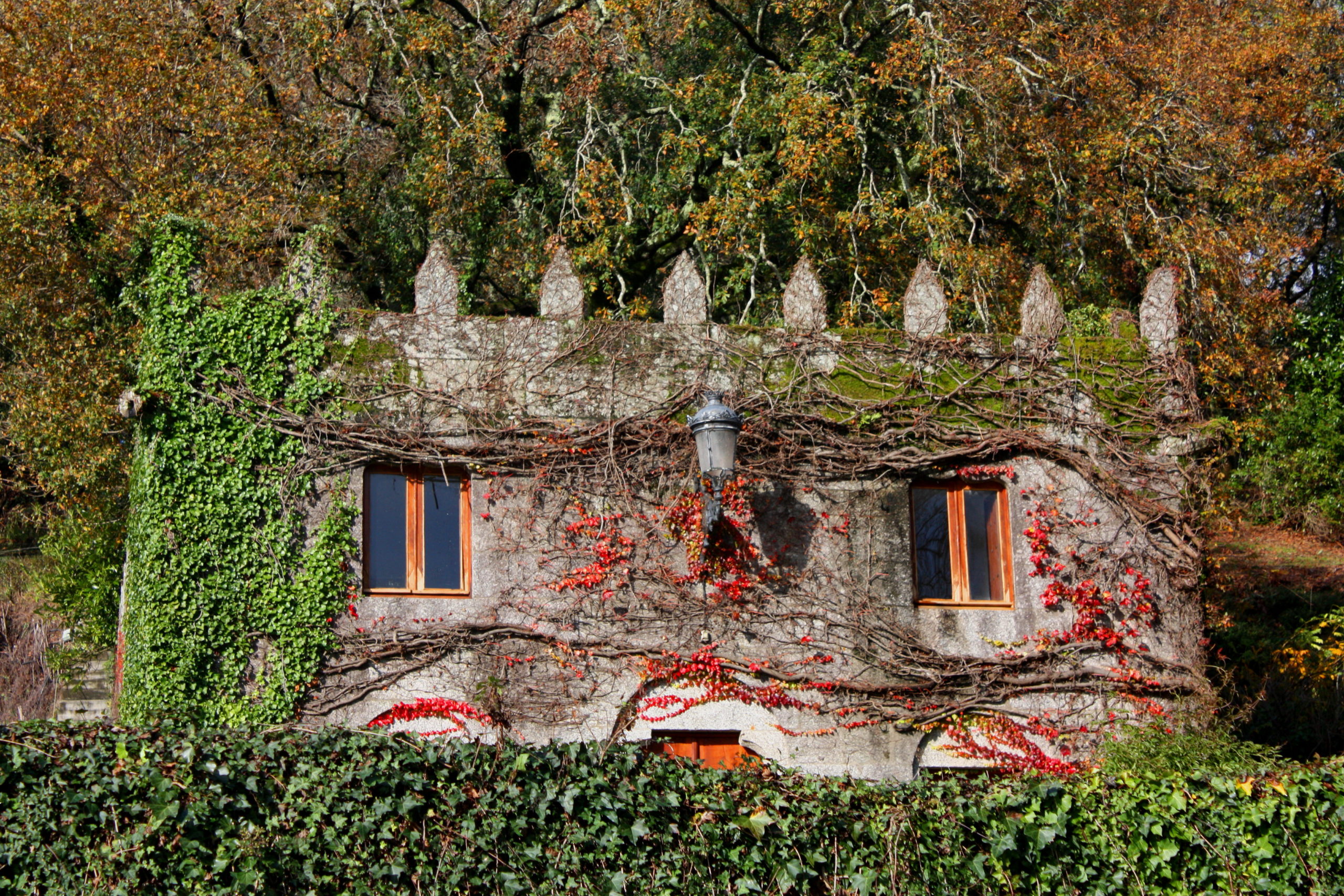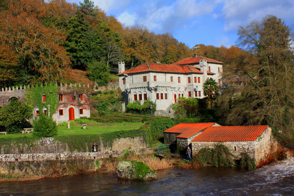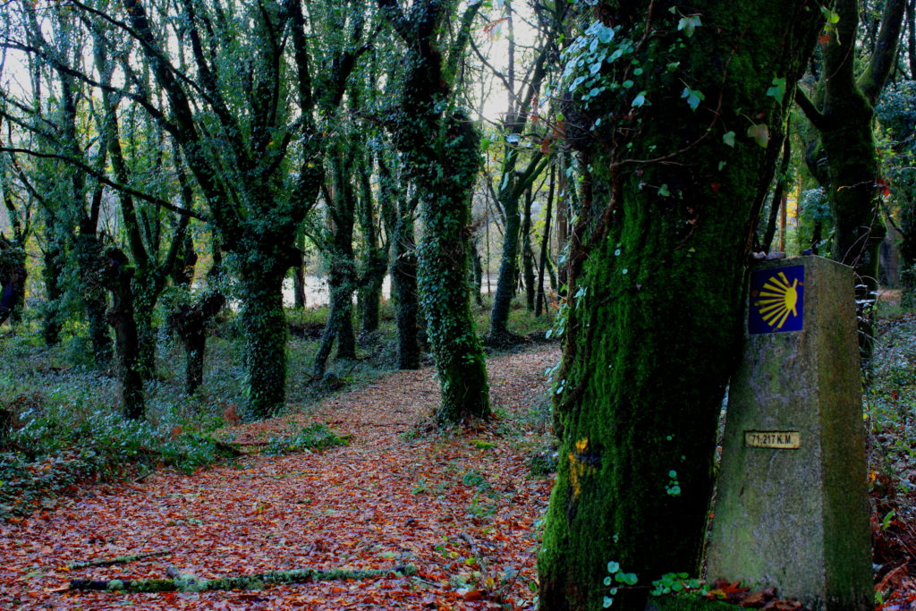 Uno de los paseos del robledal llega hasta la Costa do Cano, que desciende hasta Ponte Sarela. Tras cruzar el río aún podemos ver en ruinas y conquistadas por las hiedras, las antiguas fábricas de encurtidos y a su lado en una finca particular, un Santiago peregrino que me da ánimos.