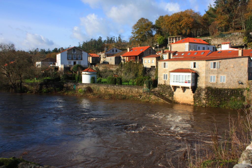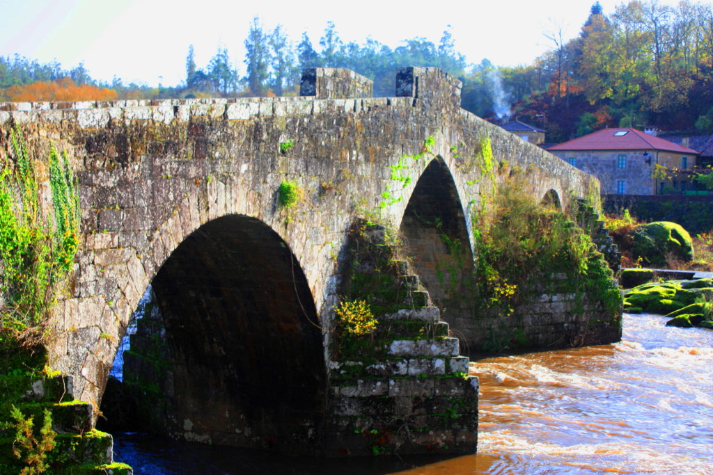 La carretera me lleva hasta el río Tambre, que separa en dos el núcleo de Ponte Maceira y divide también Ames y Negreira (km 17). Se unen a través de un gran puente de piedra, a Ponte da Vella, que según cuentan fue construida por los romanos y, después, sobre los antiguos pilares, se erigió otro puente entre los siglos XIII y XIV por petición de la Mitra Compostelana. De nuevo, en el XVIII, fue reformado de nuevo.