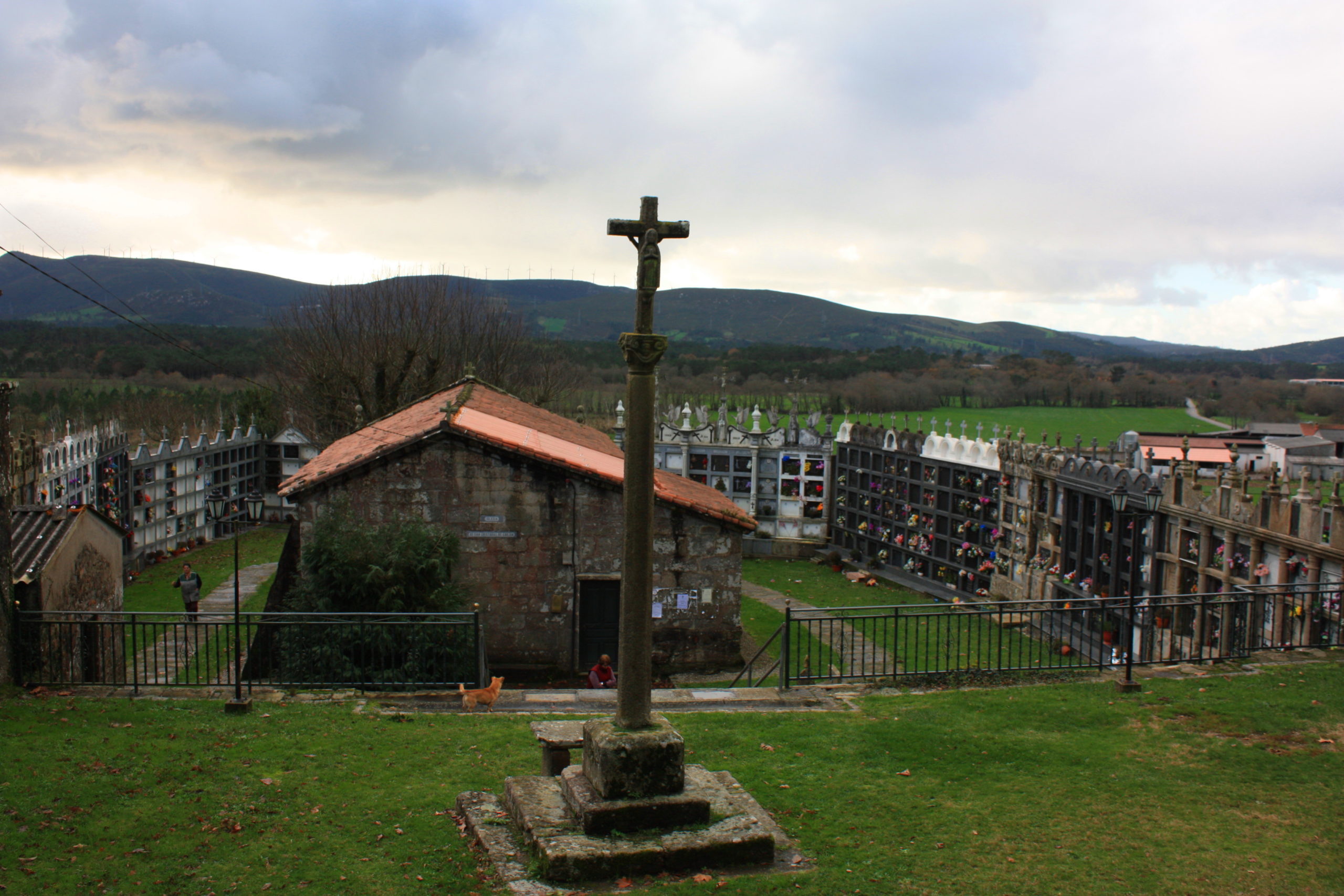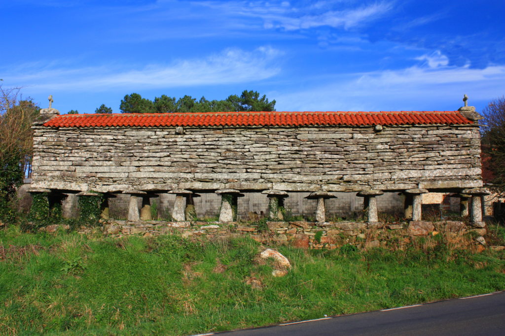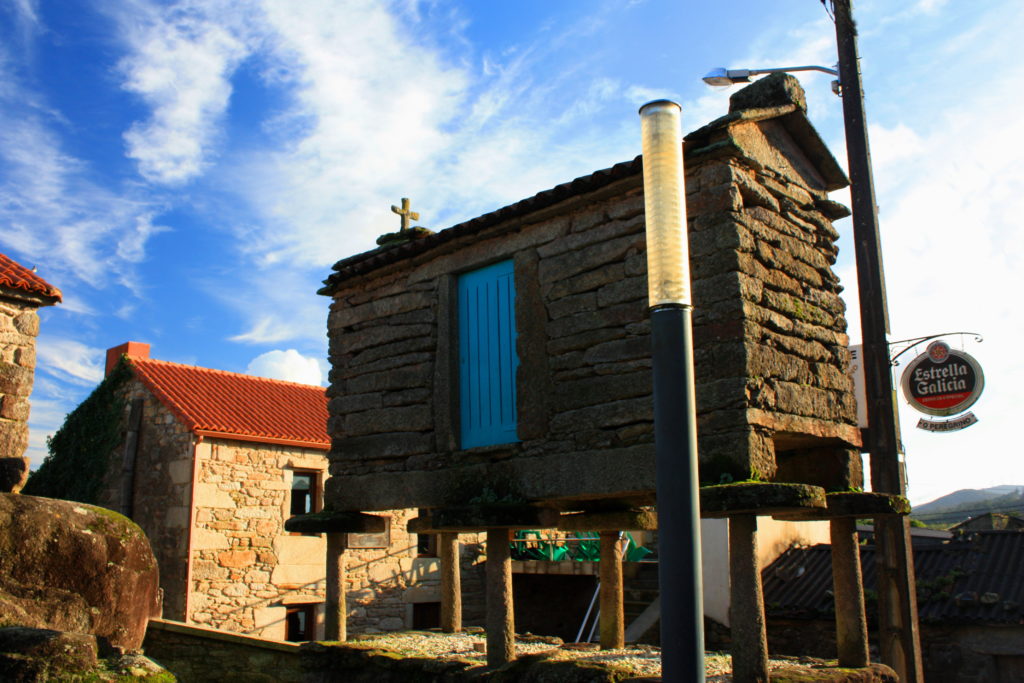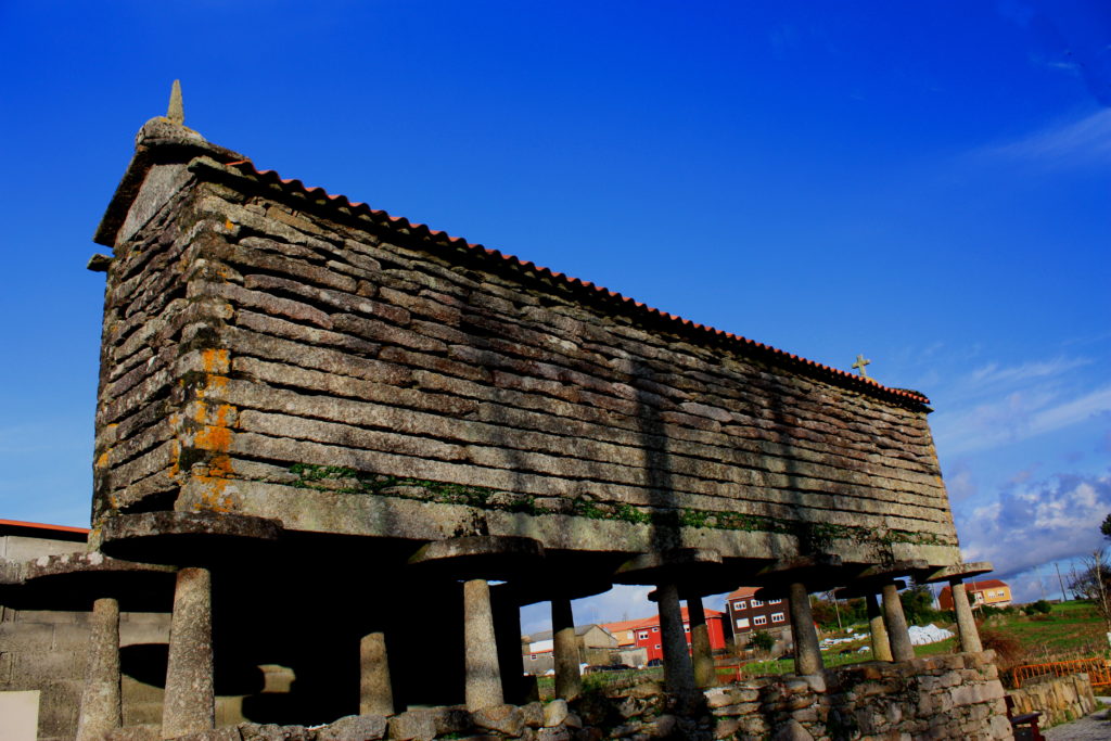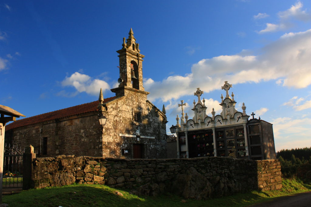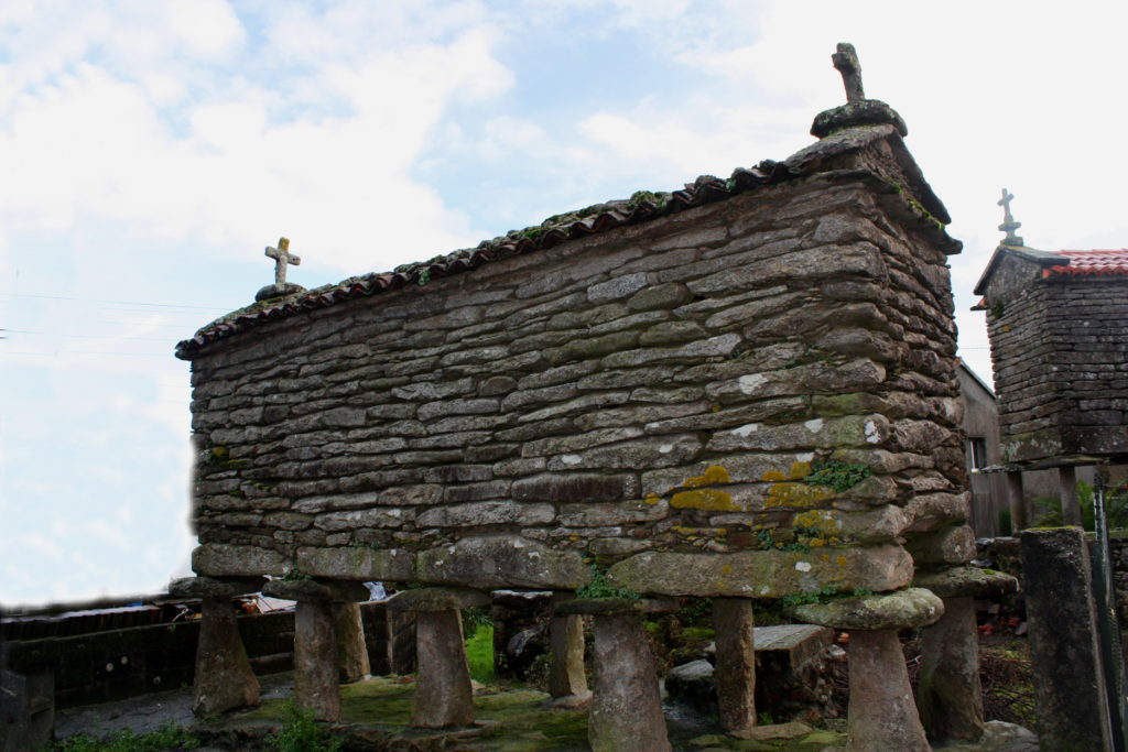 La aldea conserva el aspecto tradicional del rural gallego, con callejuelas muy apretadas y “corredoiras” entre casas de mampostería. Sigo encontrando hórreos a mi paso, debe ser el pueblo con la mayor cantidad que he visto hasta el momento. También visito la iglesia de Santiago de Olveiroa, construida a finales del siglo XII pero con importantes reformas en los s. XVIII y XIX.