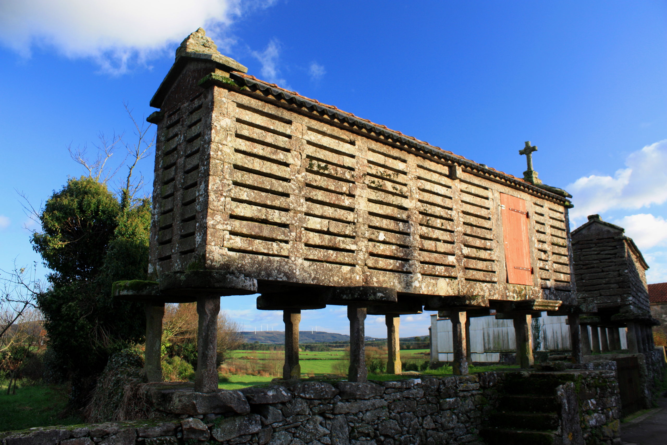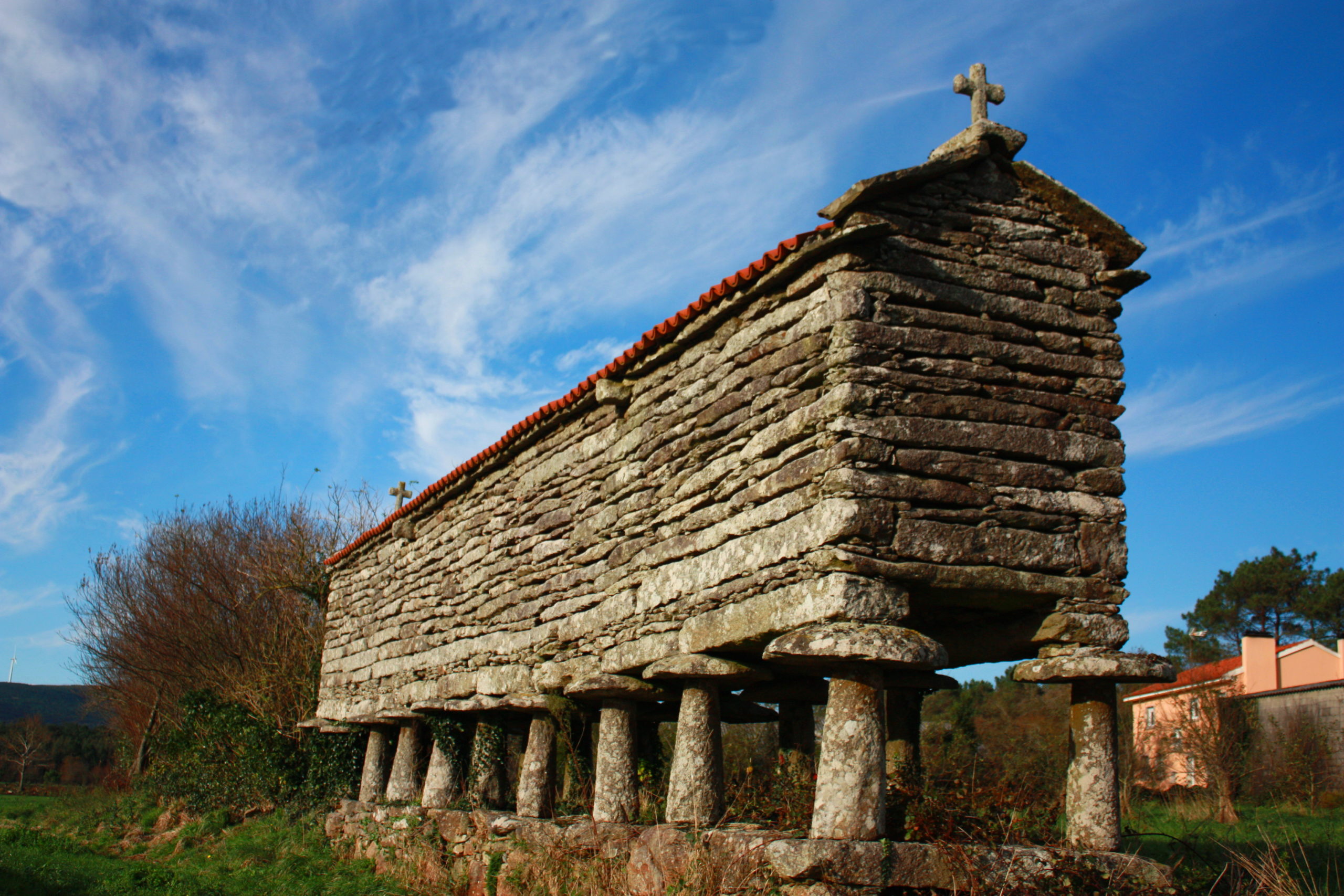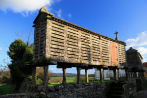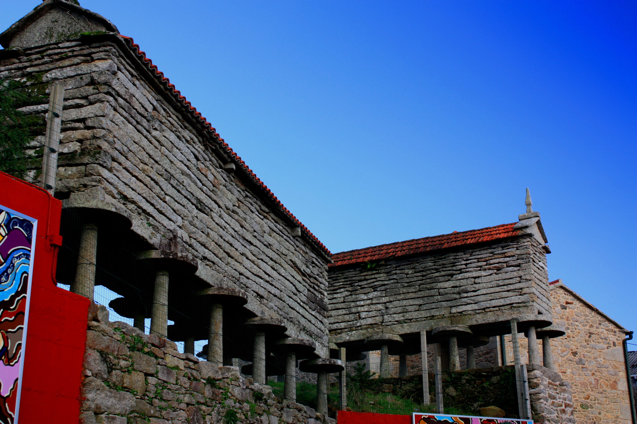 La aldea conserva el aspecto tradicional del rural gallego, con callejuelas muy apretadas y “corredoiras” entre casas de mampostería. Sigo encontrando hórreos a mi paso, debe ser el pueblo con la mayor cantidad que he visto hasta el momento. También visito la iglesia de Santiago de Olveiroa, construida a finales del siglo XII pero con importantes reformas en los s. XVIII y XIX.