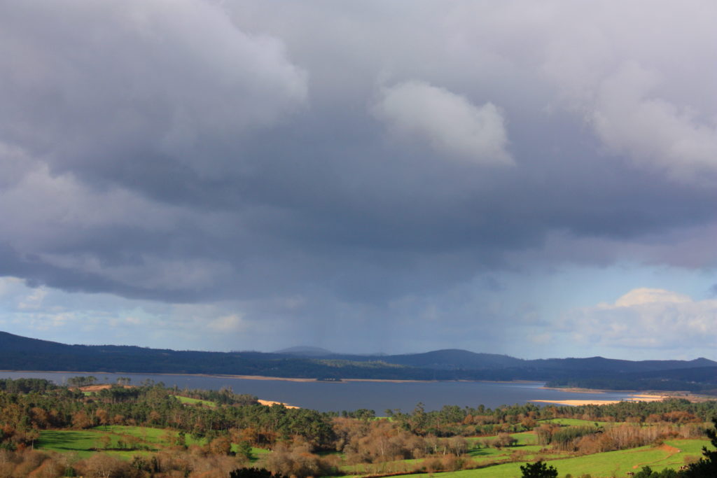 Corono el alto do Mar de Ovellas con un premio que es una bella vista del valle de A Maia, aunque el día se está nublando cada vesz más. Luego toca una ligera bajada hacia el valle del Tambre, pasando por Susavilla do Carballo, Trasmonte y Burgueiros.