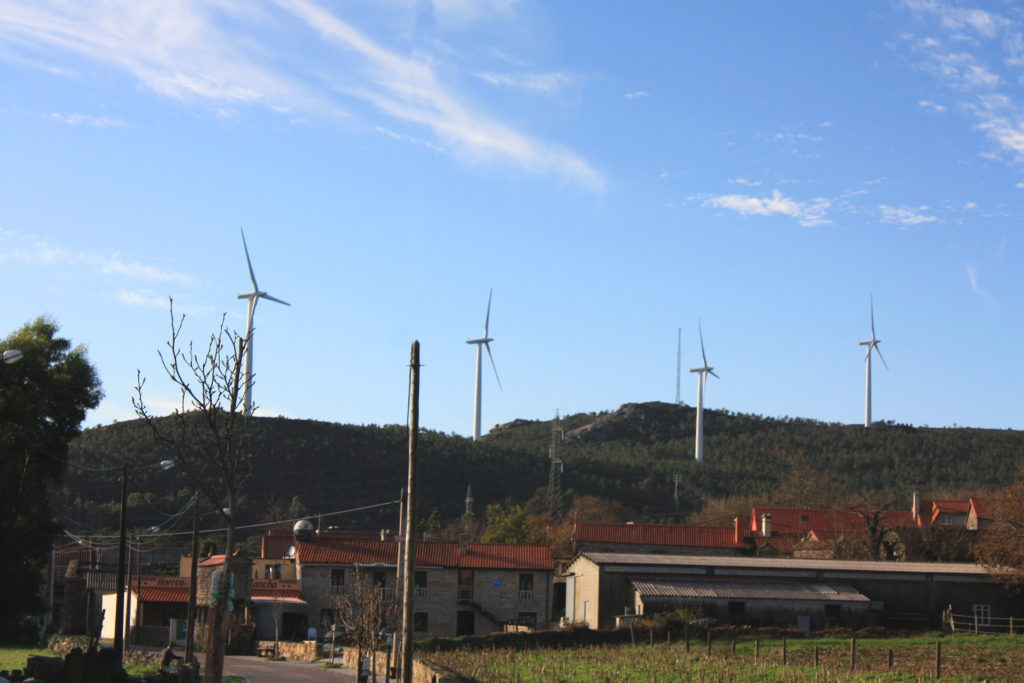A la salida de Cornovo, dejamos otra vez la compañía del asfalto y llegamos hasta una pequeña pasarela que salva el rego de Forxán. La jornada recorre el paraje del Altiño do Cotón en un entorno donde se mezclan tojos, maizales, pinos y eucaliptos con los molinos eólicos.