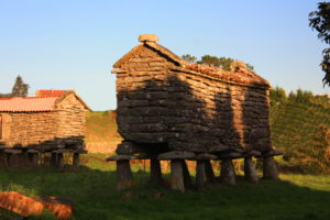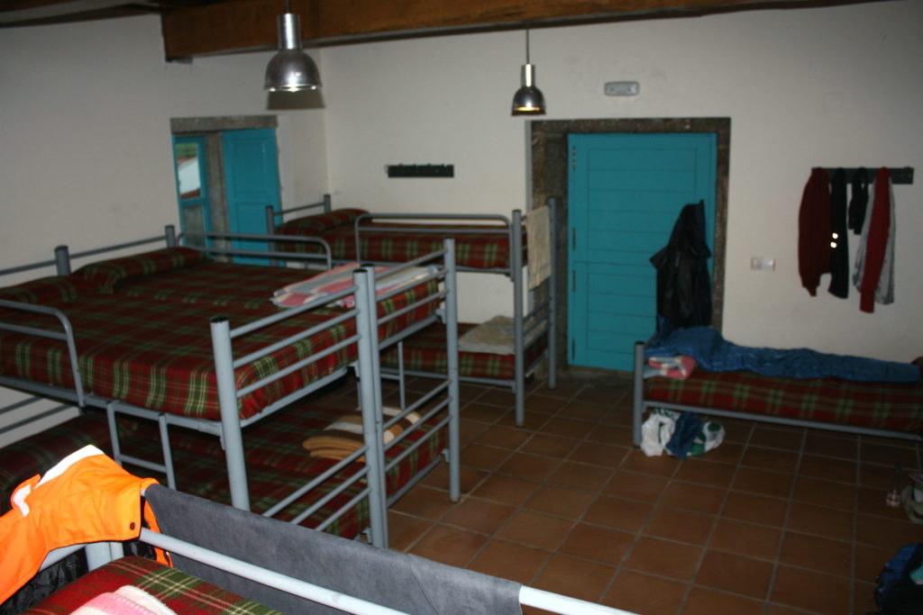 Llego por fin al albergue, con dos pisos y 32 plazas, todas en literas. También cuenta con unos hórreos para los peregrinos y uno viejo e inacabado que por las noches se ilumina desde el suelo.