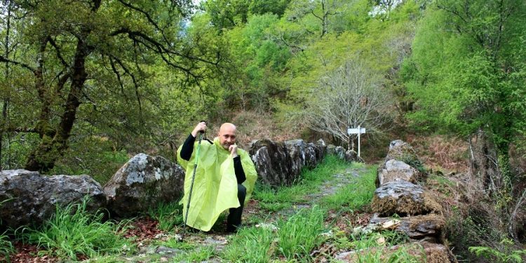 Tomás Alonso disfruta de una ruta a lo largo del río Lérez en la que además de disfrutar de sus viejos puentes y molinos "lucha" contra las inclemencias del tiempo y la invasión de la maleza