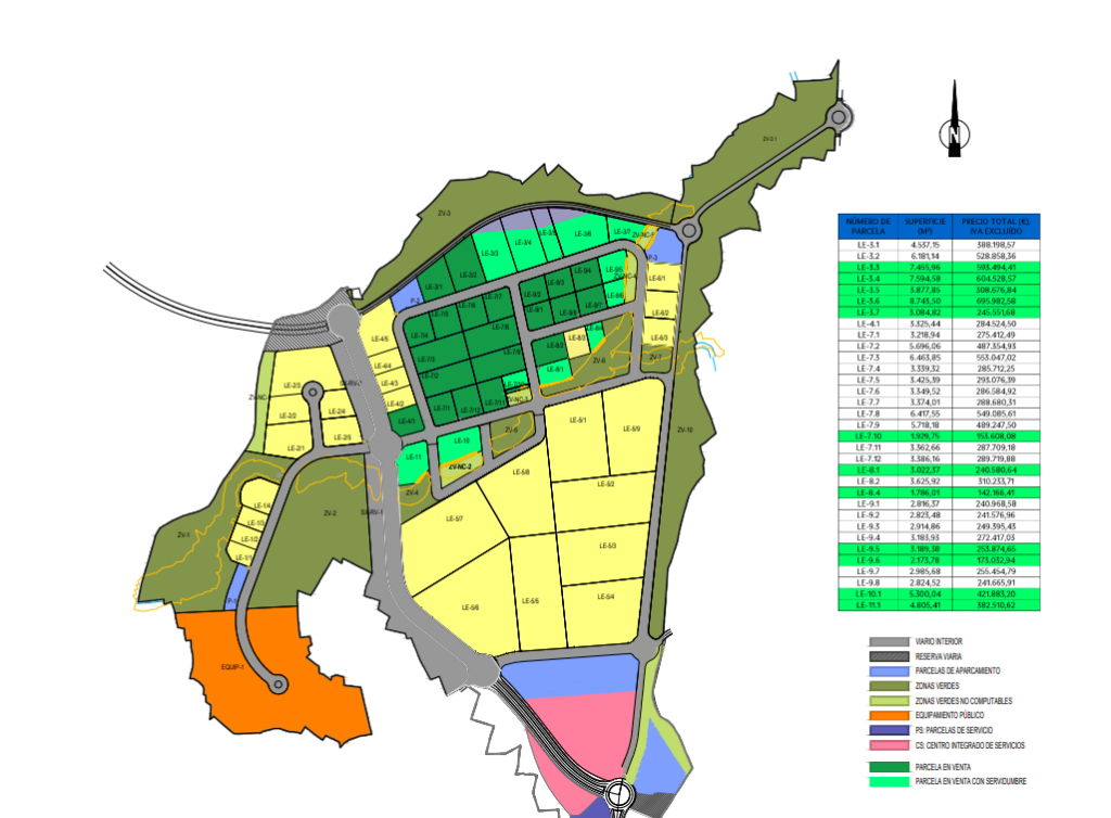 Con respecto al tamaño, las superficies van desde los 1.786 m2 de la más pequeña hasta los 8.743 m2, aunque se pueden agrupar parcelas hasta alcanzar una superficie máxima de 49.681 m2 .