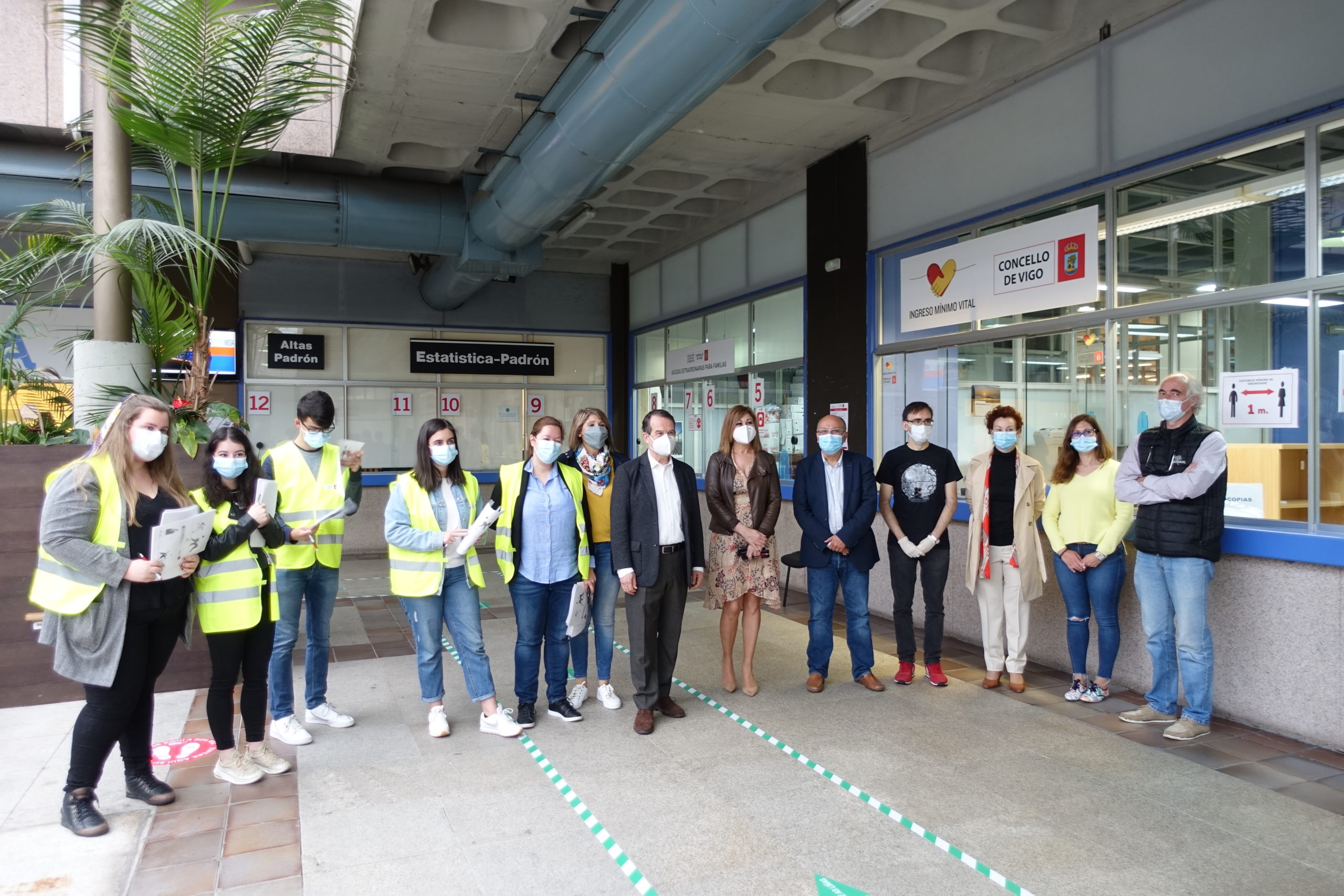 A pesar de que era necesitarlo disponer de cita previa para presentar la solicitud del Ingreso Mínimo Vital o recibir información sobre él, las puertas del ayuntamiento de Vigo registraron colas a primera hora de este lunes. En el primer día de tramitaciones, el Concello dispuso dos ventanillas de atención al público y un equipo de funcionarios y voluntarios tanto dentro como fuera de la lonja para resolver las dudas de la ciudadanía.