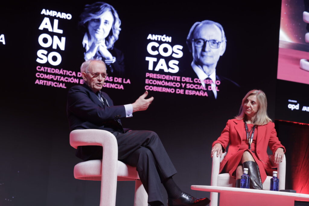 A la charla de Alonso se incorporó Antón Costas, presidente del Consejo Económico y Social, quien coincidió con la experta en inteligencia artificial en que las aplicaciones tecnológicas deben ser útiles y no sustituirnos. Costas apeló a no caer en el fatalismo, sino a impulsar desarrollos que hagan de la inteligencia artificial una herramienta “útil para mejorar nuestras capacidades y garantizar que la prosperidad sea para todos”. A su juicio, algunos lo denominan “apocalipsis laboral” ante la incertidumbre y la ansiedad que provoca no saber qué ocurrirá.