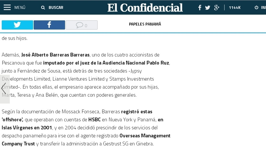 La web www.elconfidencial.com recoge la actividad de José Alberto Barreras, un empresario vigués afincado en Madrid y que durante años fue una persona cercana a Manuel Fernández de Sousa. De hecho, era uno de los accionistas de Pescanova y vendió sus acciones unos días antes de la caída de la empresa de Chapela.