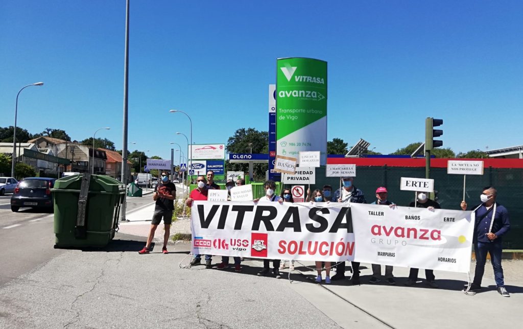 O comité de empresa de Vitrasa, concesionaria do servizo de transporte urbano do Concello de Vigo, desenvolveu este venres as primeiras mobilizacións da campaña de protestas que vén de poñer en marcha para denunciar os “incumprimentos da empresa e do Goberno local” a respecto da colocación de baños e mamparas, da aplicación do ERTE e das tarxetas moedeiro, así como en cuestións relativas á contratación e seguridade e hixiene nos autobuses e no taller.
