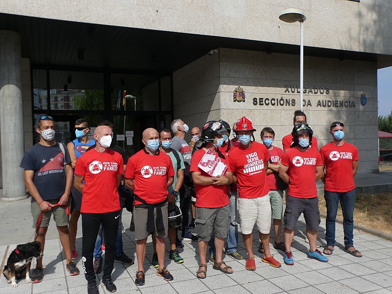 O conflito laboral entre os bombeiros de Vigo e o goberno local deu hoxe un novo paso coa formalización da denuncia no Xulgado do Penal número 1 por parte dos delegados da CIG Miguel Uclés e Fernando Solveira, que posteriormente compareceron en rolda de prensa xunto ao comité de folga para explicar a decisión. «Unha vez que os tribunais do contencioso administrativo aos que acudimos para que anularan o decreto nos deron a razón, vémonos na obriga de esixir que se depuren responsabilidades penais entre os autores desta actuación ilegal».