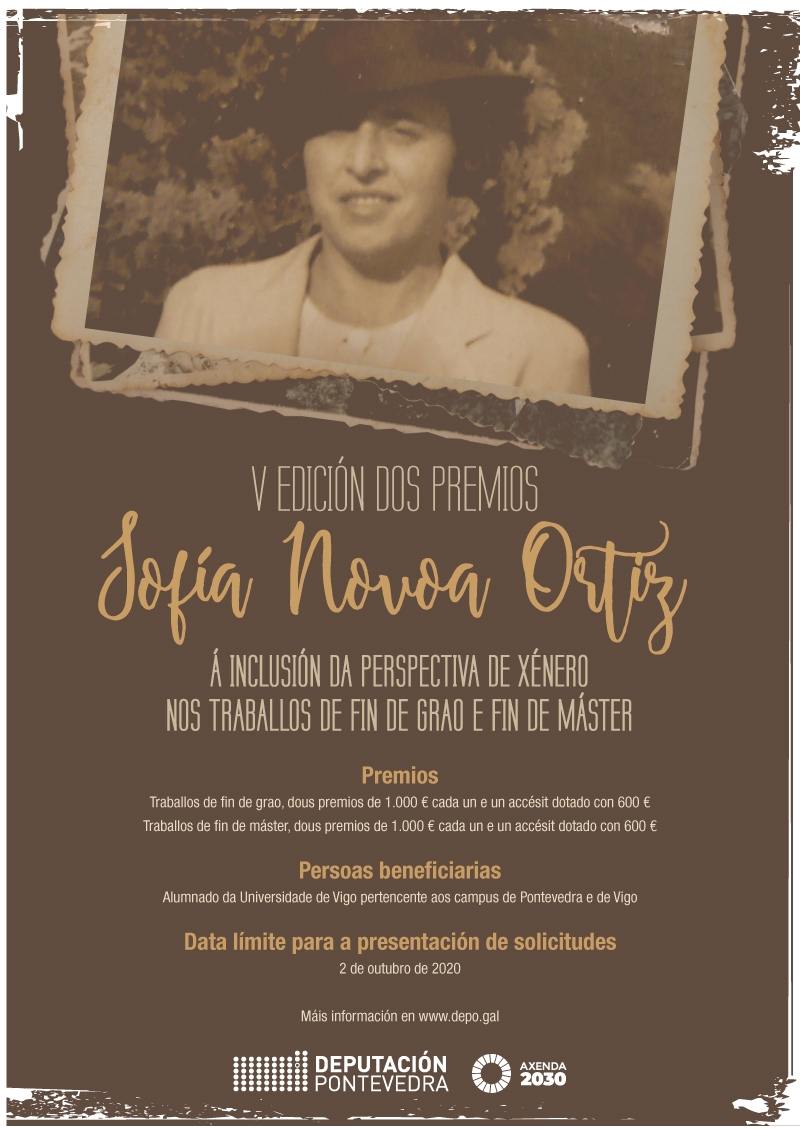 Catro estudantes da Universidade de Vigo, tres delas veciñas de Bueu e unha de Moaña, son as distinguidas na quinta edición dos Premios Sofía Novoa, cos que a Deputación de Pontevedra recoñece cada ano a inclusión da perspectiva de xénero nos Traballos de Fin de Grao e de Fin de Máster dos campus de Pontevedra e Vigo. O xurado decidiu galardoar os TFG elaborados por María Tenorio Solla, Judit Cerviño Malvido e Patricia Torres Ferradas, as tres veciñas de Bueu, e o TFM de Andrea López Pastoriza, de Moaña.