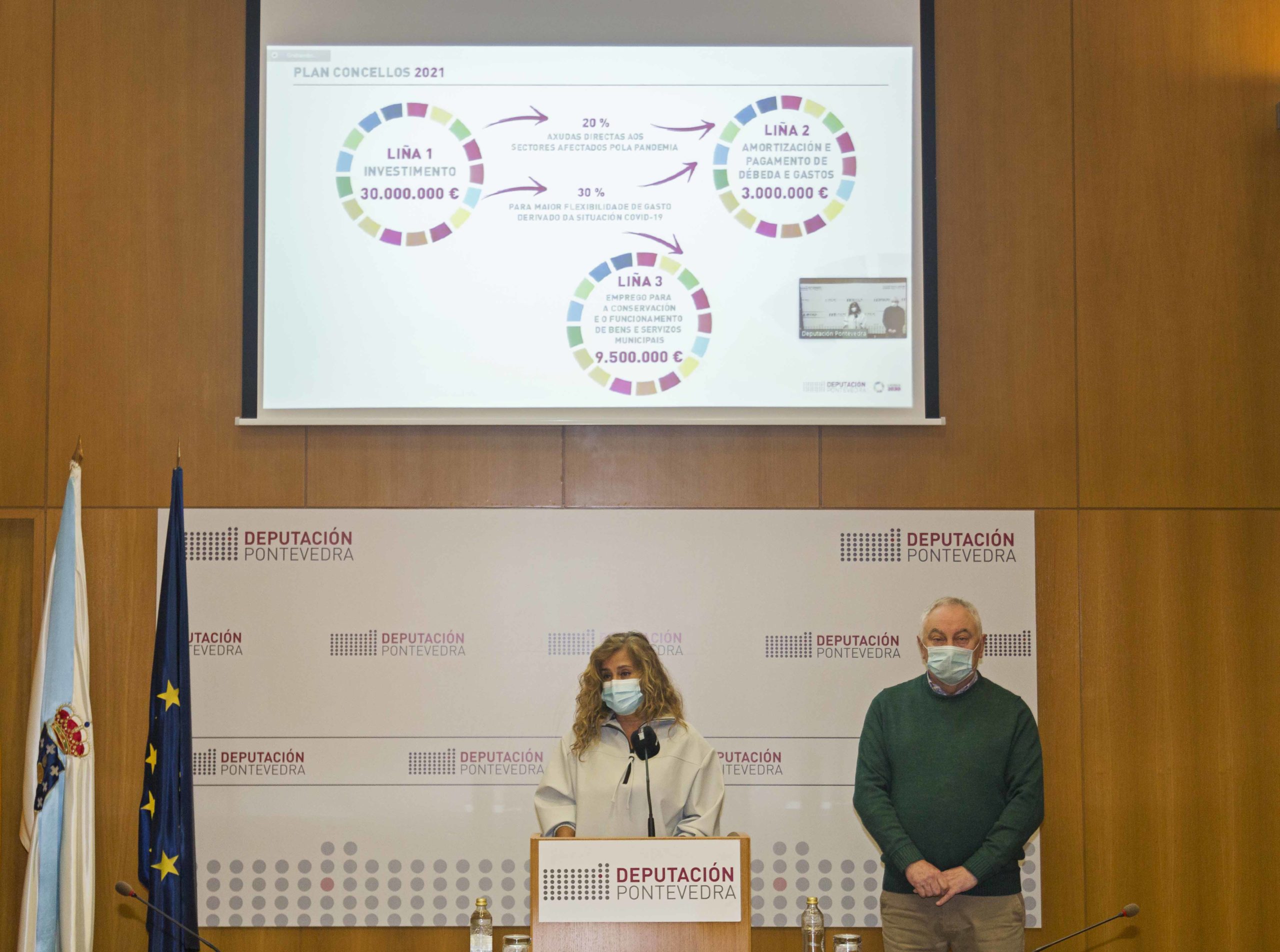 Os concellos da comarca de Vigo recibirán o próximo ano 2021 case 8,3 millóns de euros do Plan Concellos da Deputación de Pontevedra, o que supón un aumento nos seus investimentos que se reflicte en todos os municipios e se traduce na maior transferencia de recursos da historia da institución provincial. Os números do plan do vindeiro ano, que se incrementan ata os 42,5 millóns, foron presentados este venres pola presidenta da Deputación, Carmela Silva, e o vicepresidente César Mosquera, e responden a criterios técnicos de poboación, superficie, núcleos e densidade.