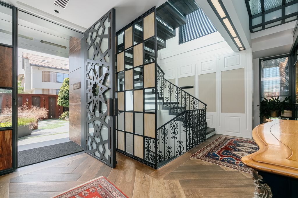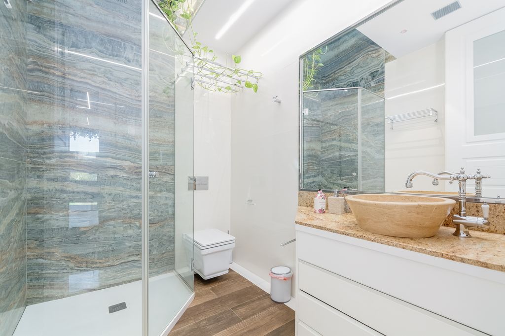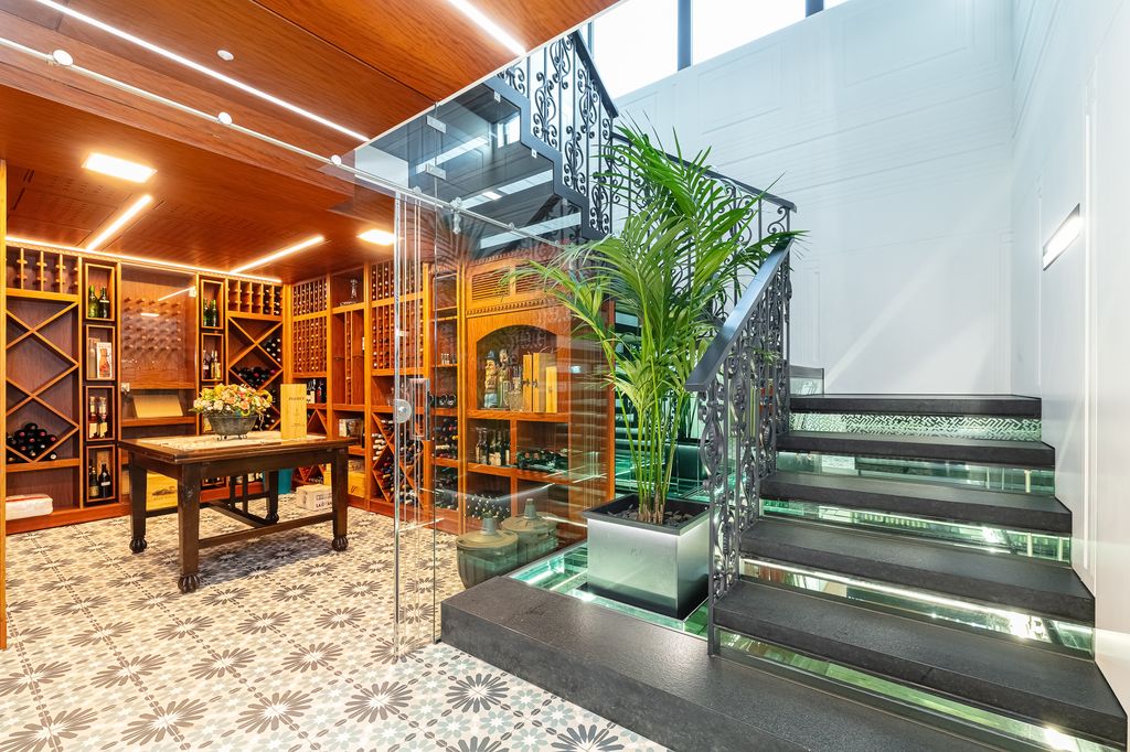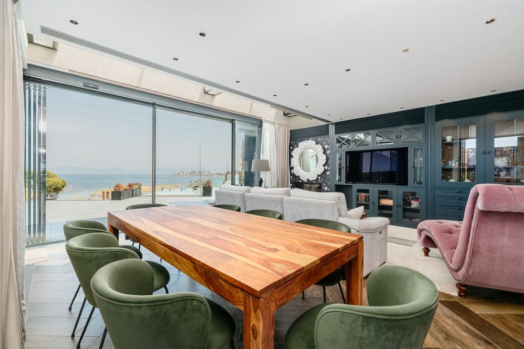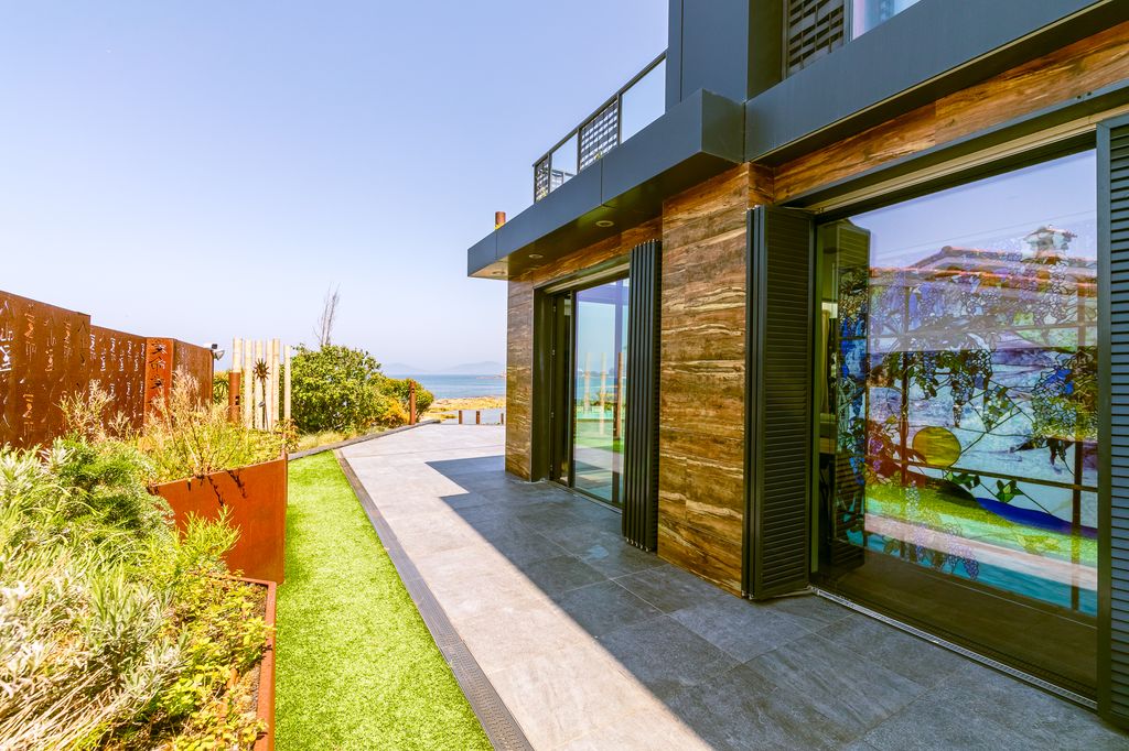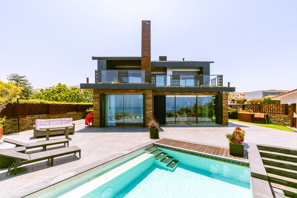 En total, la impresionante mansión cuenta con 15 estancias, cinco dormitorios, cinco baños, tres balcones y una terraza principal de 50 m2 donde se entremezclan acabados de madera, metal y piedra. Y en el exterior, jardín privado con piscina salina, área de barbacoa y porche donde disfrutar del mar y las mejores vistas y puestas de sol.