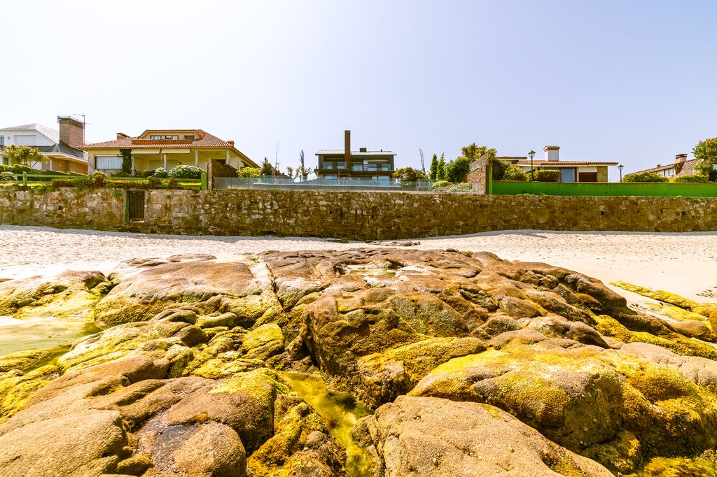 De reciente construcción, la fecha es del año 2020, destacan de la vivienda que se ha hecho con materiales y acabados de la «máxima calidad». En un terreno a pie de playa de 1.050 m2 con piscina y jardín y vistas a las Cíes y a la isla de Toralla, la casa principal tiene una superficie de 560 m2 que se distribuye en dos plantas.