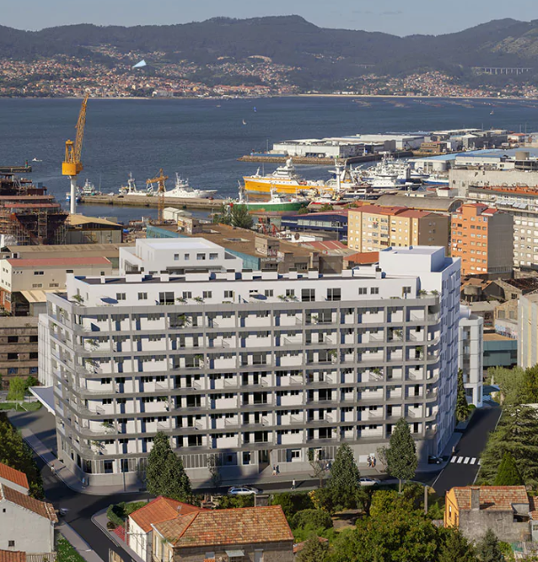 Además, muchos de ellos tendrán amplias terrazas mientras que los pisos más altos contarán con vistas a la Ría. La obra se completa con 55 trasteros y 89 plazas de garaje, un jardín exterior y un local comunitario.