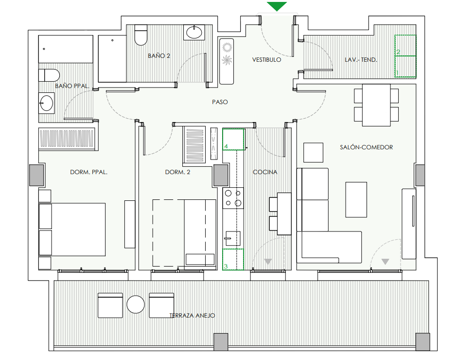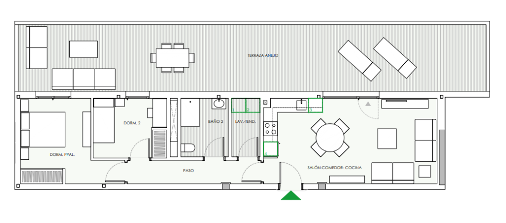 El más económico que tienen disponible ahora mismo es una vivienda de 92,54 m2 con dos dormitorios, terraza, trastero y una plaza de garaje por 260.000 euros.