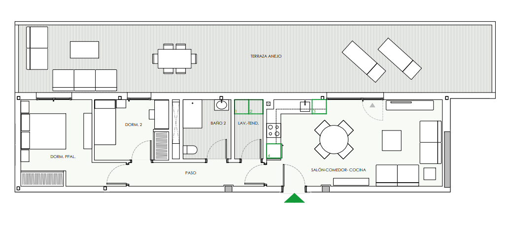 El más económico que tienen disponible ahora mismo es una vivienda de 92,54 m2 con dos dormitorios, terraza, trastero y una plaza de garaje por 260.000 euros.