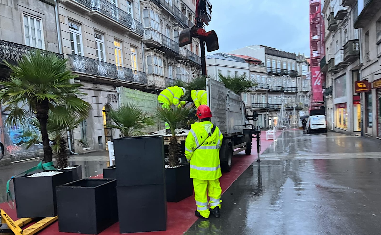 Bajo la lluvia de este martes, las calles de Vigo ofrecen una estampa que, con seguridad, genera sentimientos encontrados: la de los operarios de la empresa cordobesa Ximénez Iluminación procediendo al desmontaje de los millones de luces led que durante dos meses han alumbrado las calles de una ciudad que pareciera hoy envuelta en un manto de silencio.