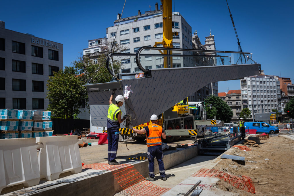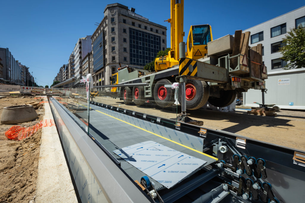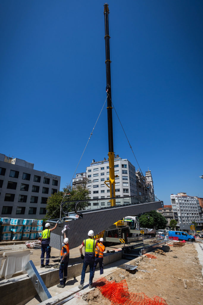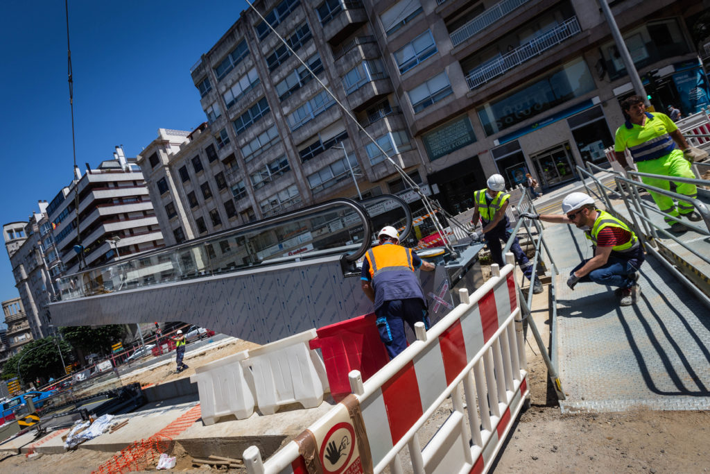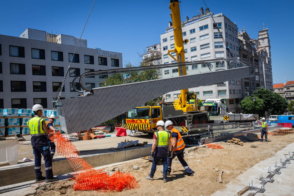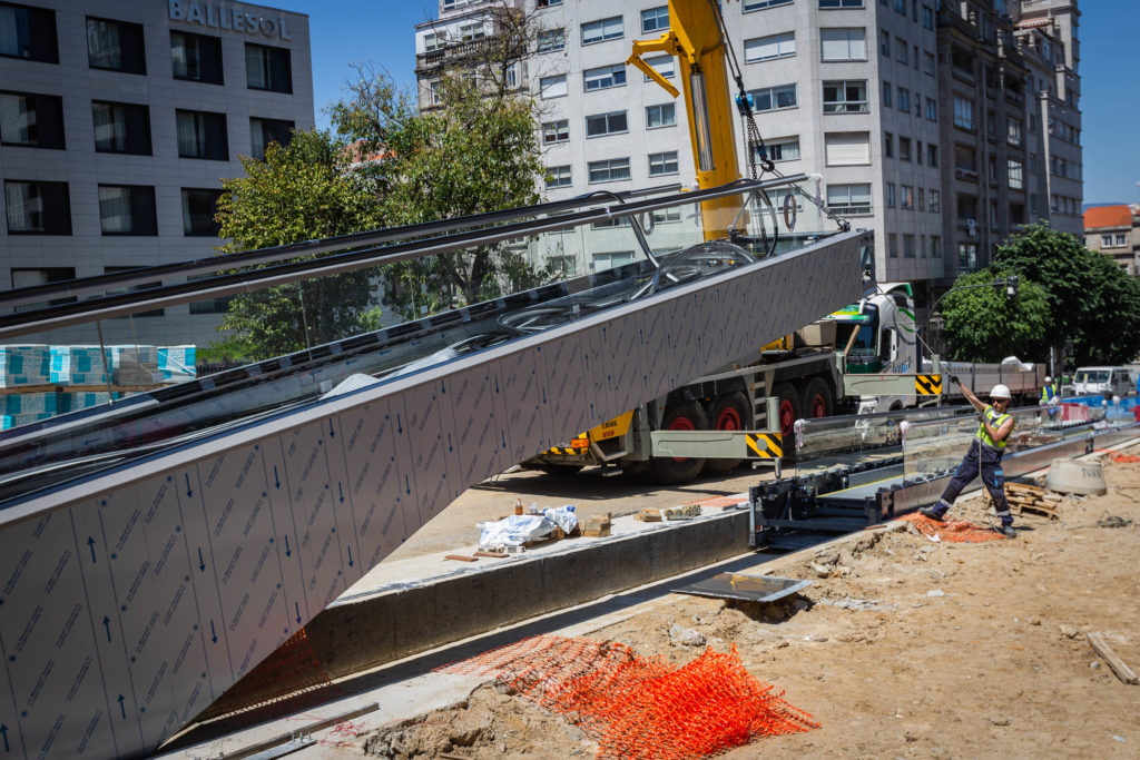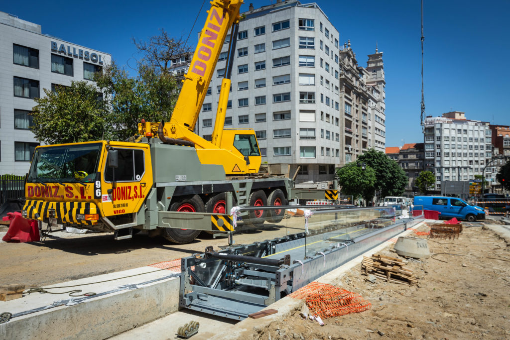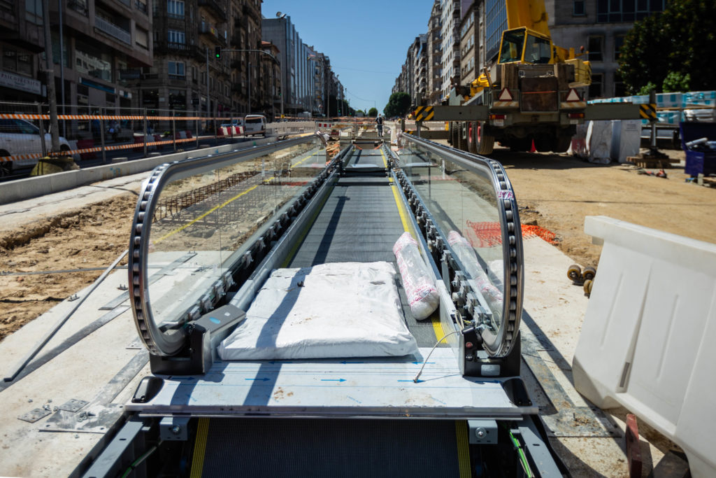 La Gran Vía de Vigo dejó atrás definitivamente este martes su tradicional imagen con el boulevard de camelios y naranjos para convertirse en una cinta mécanica que trasladará a los viandantes en un tramo de más de 250 metros.