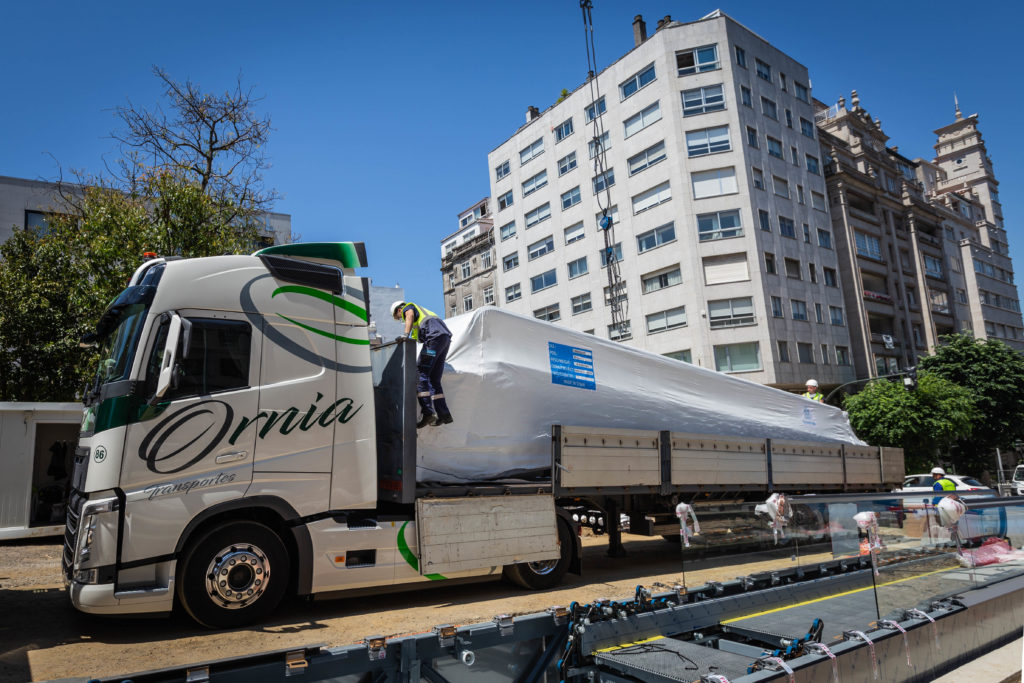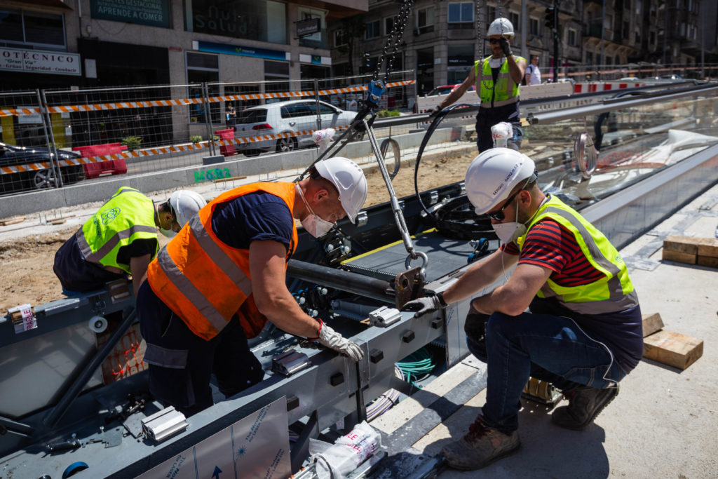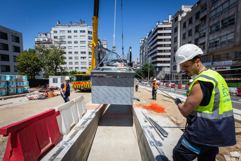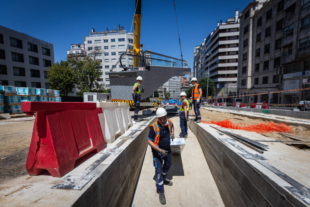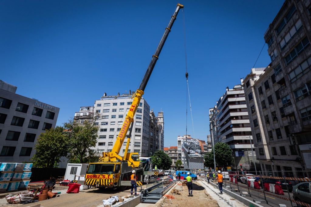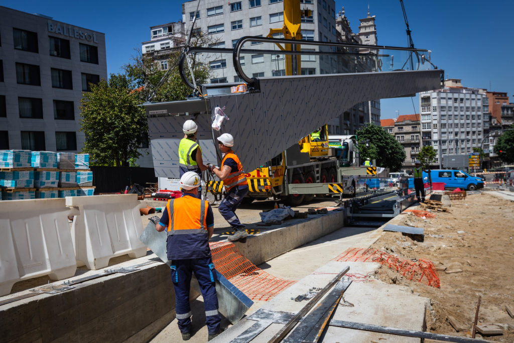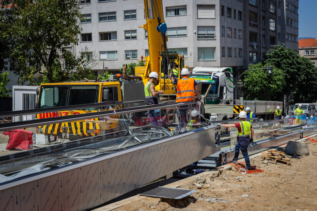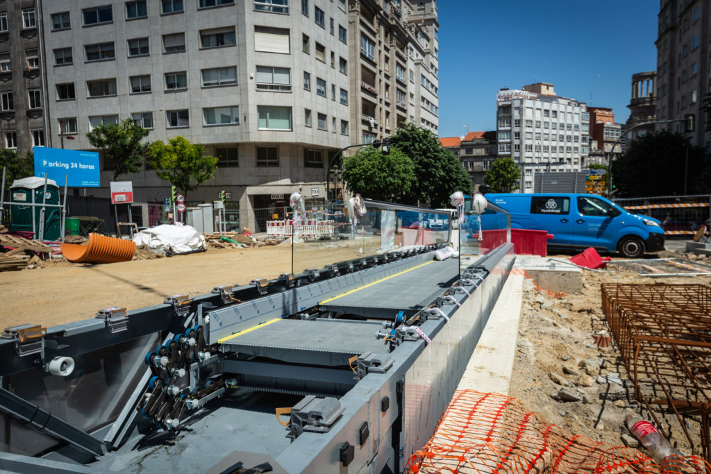 La Gran Vía de Vigo dejó atrás definitivamente este martes su tradicional imagen con el boulevard de camelios y naranjos para convertirse en una cinta mécanica que trasladará a los viandantes en un tramo de más de 250 metros.