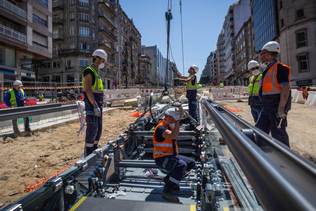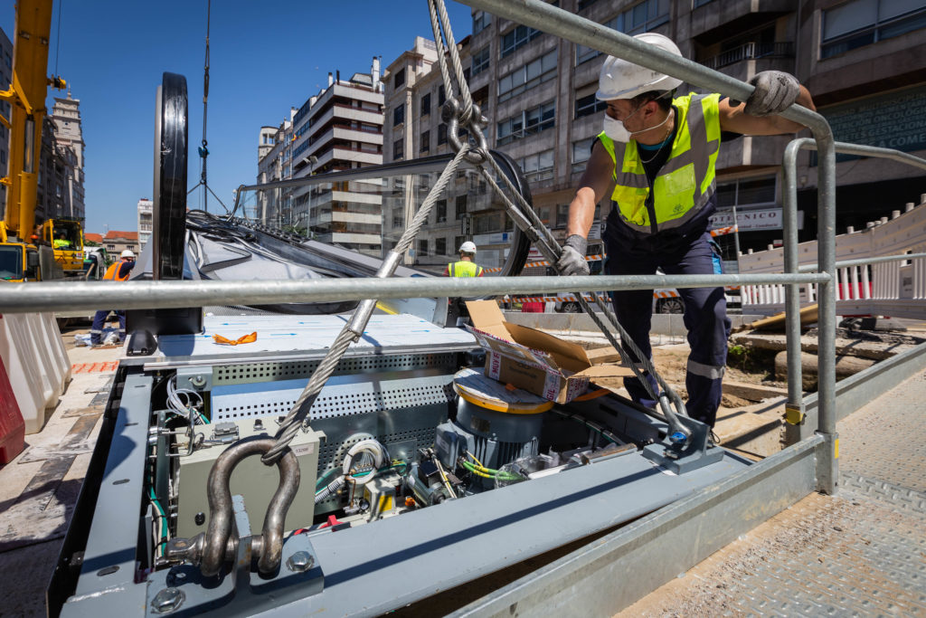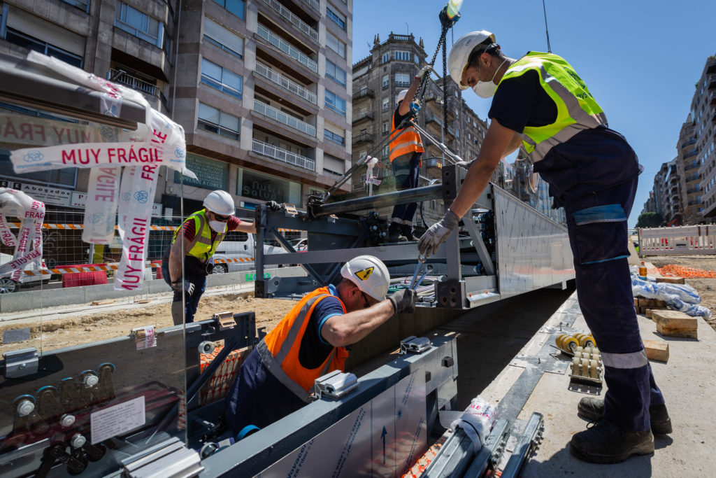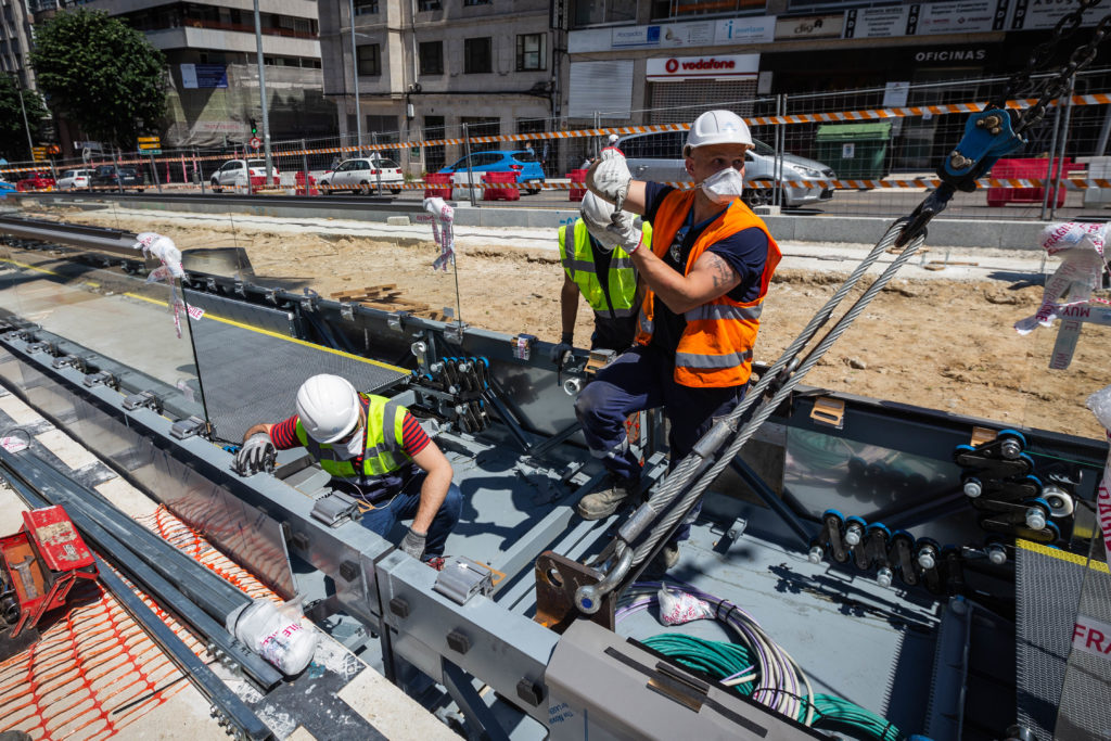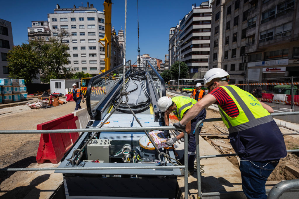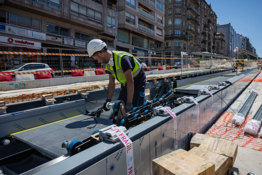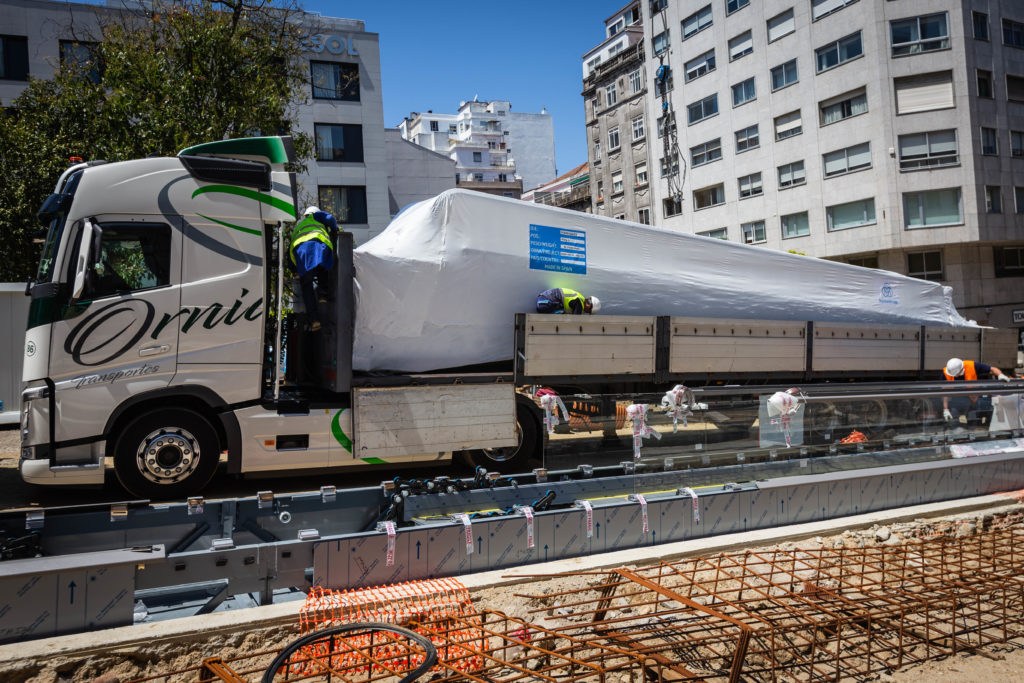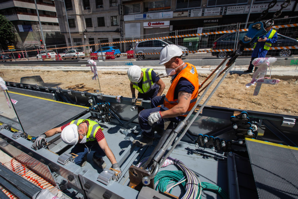 La Gran Vía de Vigo dejó atrás definitivamente este martes su tradicional imagen con el boulevard de camelios y naranjos para convertirse en una cinta mécanica que trasladará a los viandantes en un tramo de más de 250 metros.