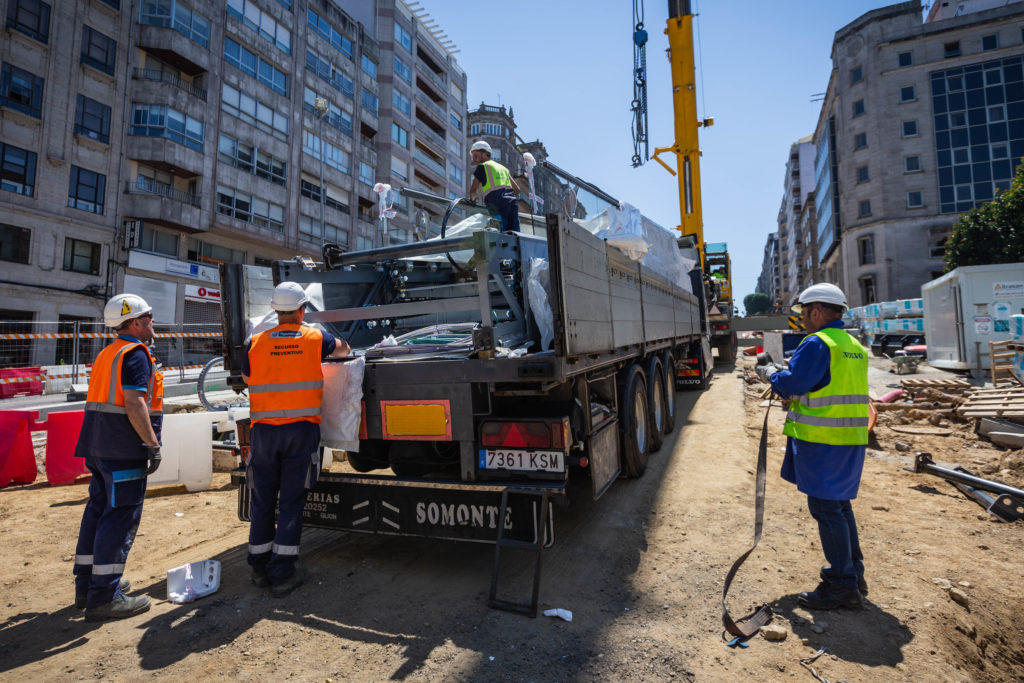 Las cintas mecánicas de la humanización de la Gran Vía quedarán estarán instaladas esta misma semana después de que este lunes fueran descargadas ya las tres primeras de las nueve cintas que están previstas entre María Berdiales y la calle Venezuela. Entre este martes y el jueves se llevará a cabo a instalaciones de todas ellas y después comenzará el montaje de la estructura de la cubierta y de los vidrios, antes de la plantación de la masa vegetal y arbórea que, afirmó el regidor, triplicará la existente antes de la obra.