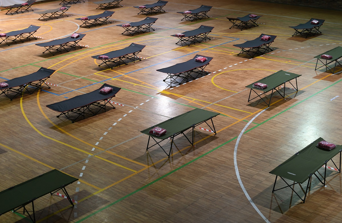 A transformación das instalacións deportivas en centro de acollida comezou este luns coa desinfección do pavillón. Este martes ultimáronse os detalles coa colocación das camas e a división do centro deportivo en cinco zonas diferenciadas en base ás directrices do Goberno central.