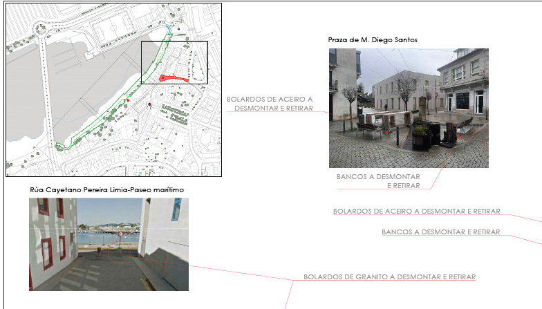 Se mantendrá el pavimento existente en la actualidad en las actuaciones de renaturalización previstas en la Plaza de Diego Santos y en la rúa Cayetano Pereira Limia.