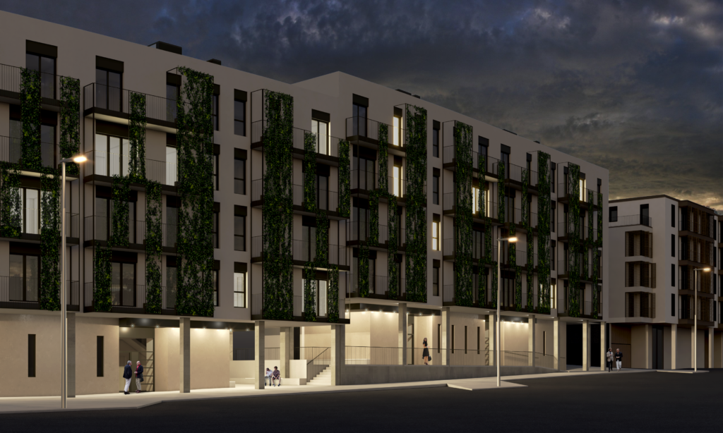 La distribución del inmueble ofrecerá 20 pisos de 2 dormitorios y otros 20 de tres (dos de ellos adaptados) además de uno más con 4 habitaciones. Como los anteriores, la actuación se completa con garajes y trasteros.