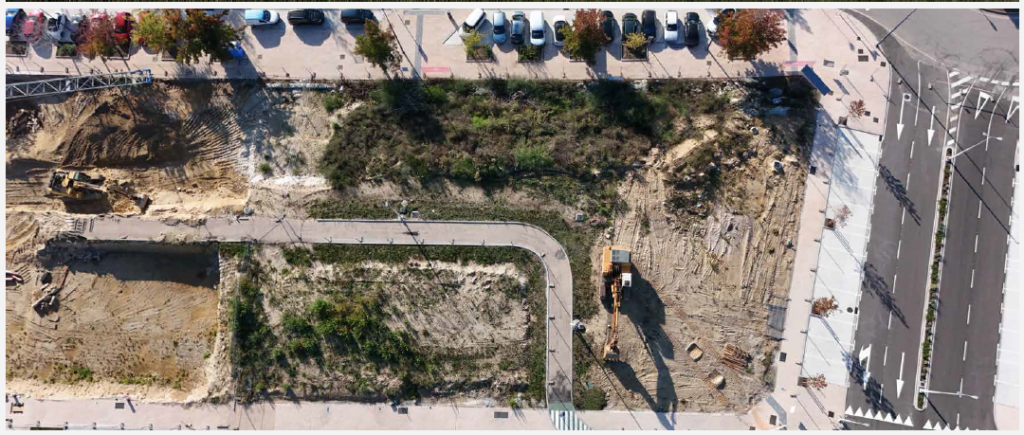 Se trata de una actuación que ejecuta la constructora Citanias Obras Servicios SLU por un importe total de 8,6 millones de euros en la parcela denominada MIVA10 o, lo que es lo mismo, se localiza en los terrenos en los que confluye la rotonda del centro de salud con la rúa Poza Cabalo.