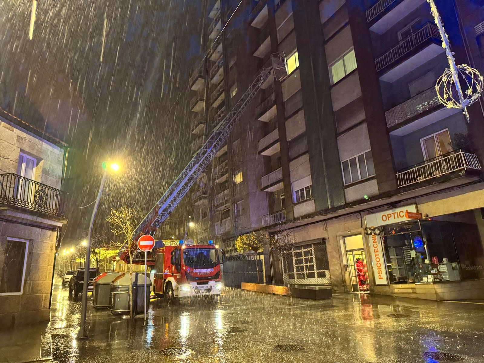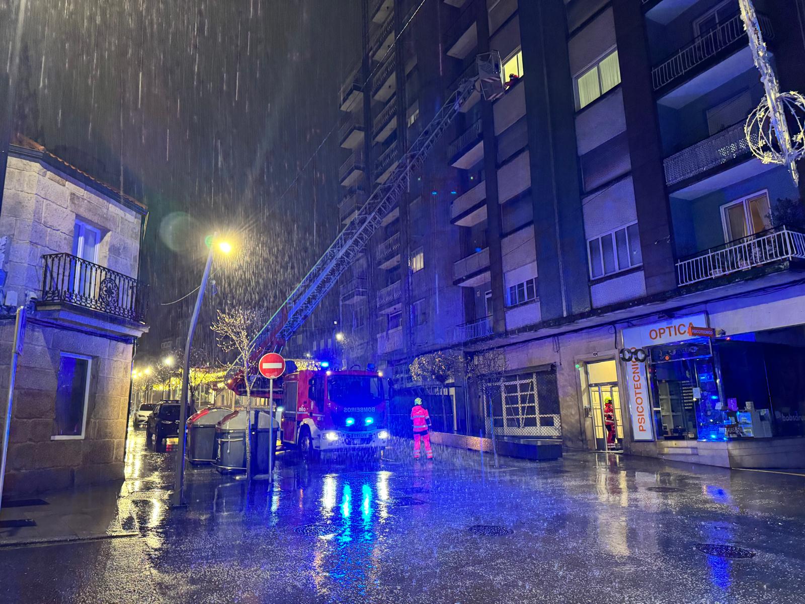 La madrugada de este martes no ha sido, ni mucho menos, una noche de descanso en Vigo. Con la ciudad en alerta roja por fenómenos costeros y lluvias torrenciales, el azote de la borrasca Joseph mantenía en vilo a los servicios de emergencia. En mitad de este escenario, una mujer vivió una situación de angustia añadida al quedar atrapada en el interior de su propia vivienda, situada en la céntrica Rúa de Don Bosco, tras un infortunio mecánico en la puerta de su domicilio que requirió la intervención de los bomberos.