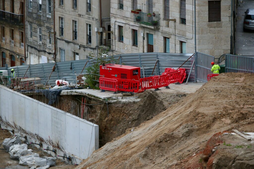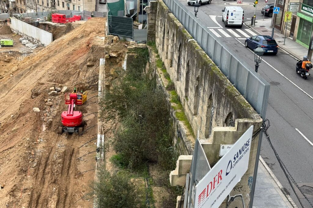 Además, en el otro extremo, hacia el norte, también se puede ver cómo quedará la rúa Poboadores. De forma longitudinal a la histórica calle se ha levantado ya un nuevo talud de contención. Se sitúa justo en el lugar donde se encontraba la fuente de A Barroca, ya desmontada y que supuestamente volverá a la zona.
