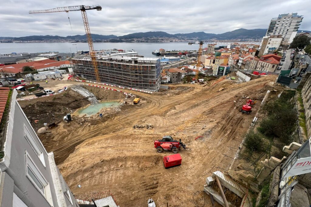 La construcción del primero de los tres grandes edificios, el Ardora, que se levantarán bajo el Paseo de Alfonso XII ya alcanzó a finales de octubre su última planta. Este primer hito permitió observar cuál será la altura final del inmueble. De esta forma también cómo serán las vistas a la Ría de Vigo.
