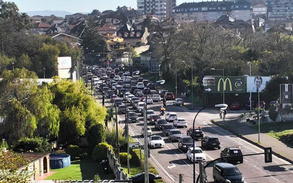 Una enorme fila de vehículos bloqueó este mediodía los accesos a Samil para protestar contra la Ley Celaá. Se trata de una manifestación convocada por asociaciones de padres y madres de alumnos, sindicatos, empresas y diferentes colectivos del sector de la educación concertada que se posicionan contra la aprobación esta semana de la nueva ley de Educación.