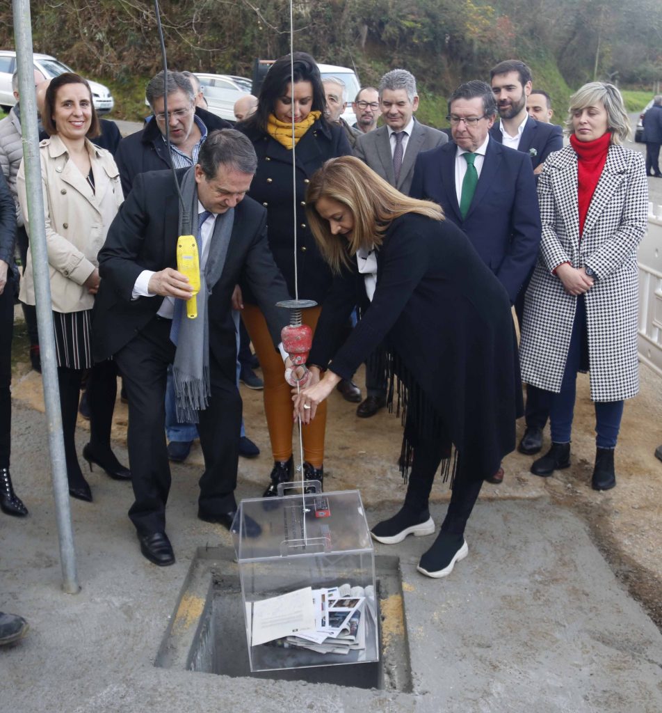 As autoridades, incluídos deputados provinciais, concelleiros e dirixentes veciñais, participaron no soterramento da urna no emprazamento preparado ao pé do cartel de obra. No interior depositáronse exemplares do día dos xornais, incluídos os dixitais, así como unha memoria USB co proxecto técnico, moedas de curso legal e, finalmente, un acta de comezo das obras, asinada por tódolos presentes.
