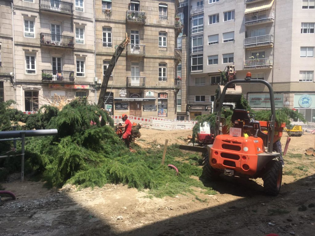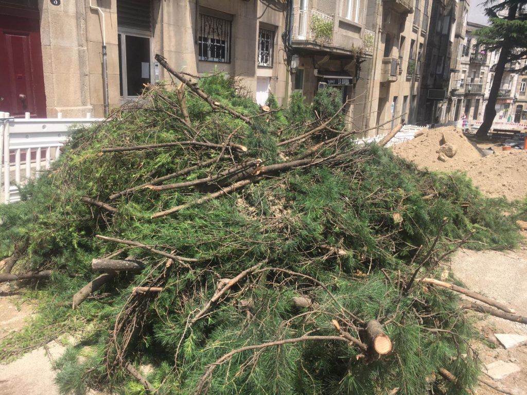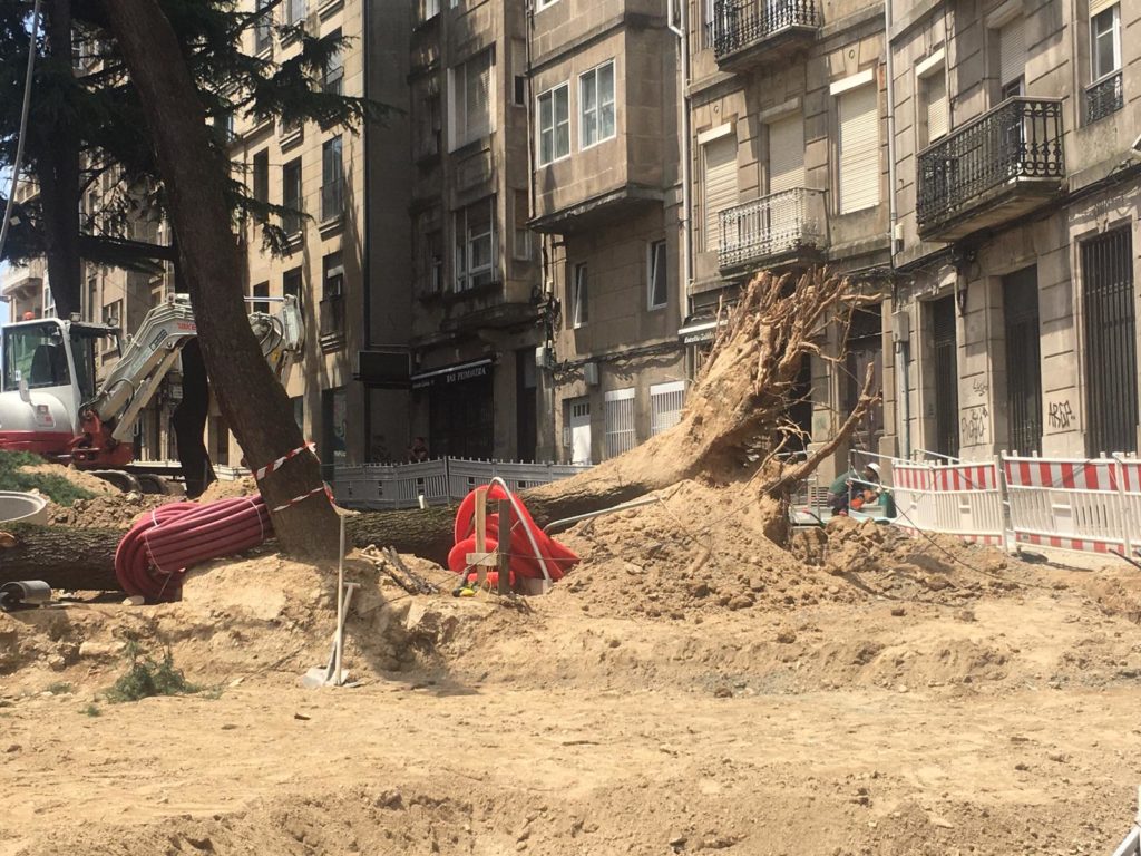 Asimismo, reclaman que se apuntalen los demás árboles y que el Concello se asegure de que no caigan más. Además, piden una sanción para la constructora por sus “reiteradas faltas de profesionalidad y seguridad”.