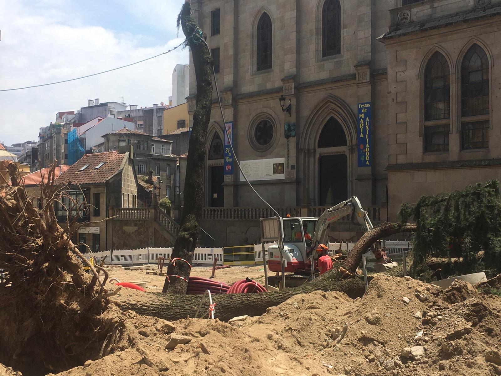 Desde el Concello de Vigo aseguran que el desplome -provocado al partirse un árbol sobre el otro- ha sido “accidental” y confirman que por fortuna no ha habido que lamentar daños personales ni materiales. Según argumentan ante las críticas, el Ayuntamiento “protegió los árboles desde el inicio de los trabajos” y el proyecto contempla mantener todos los ejemplares. Sin embargo, tal y como se puede apreciar en los vídeos grabados por los vecinos, luego fueron talados in situ por los operarios de la obra.