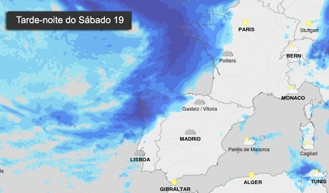 El domingo llegará un nuevo frente. «Non será tan profunda, pasará máis preto, co cal teremos máis frío en altura e chuvias intermitentes que por momentos poderán ser puntualmente fortes e vir acompañadas de treboadas e tamén de saraiba nalgúns casos, especialmente no oeste da comunidade, onde se poderán rexistrar cantidades importantes de auga en pouco tempo», señalan en Redmeteo.