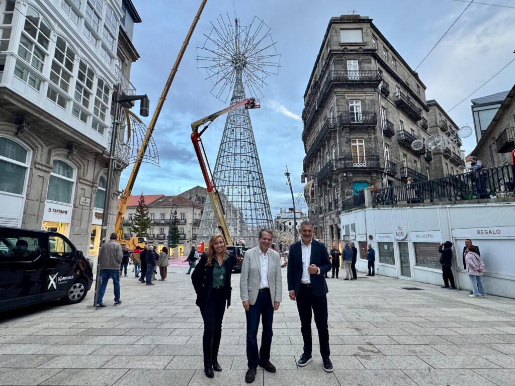 Llevaba desde el domingo la estrella del árbol de Navidad posada en el suelo en Porta do Sol, a la espera de ser izada para coronar la principal atracción de las fiestas viguesas, lo cual ha sucedido en la tarde de este martes con la presencia del alcalde, Abel Caballero, que no se ha querido perder uno de los momentos más simbólicos de cuantos preceden al encendido de las luces.